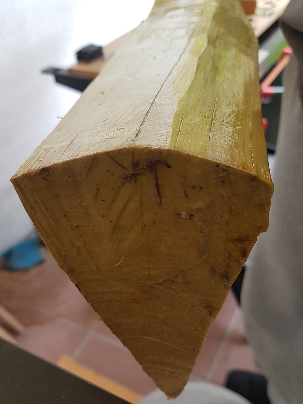 Mein 6.Bogen soll ein Osage-Recurve werden. Das Holz wurde im März 2019 in Ungarn geschlagen - im Oktober 2019 hab ich Rinde und Splint entfernt. Und da waren Trocknungsrisse :o