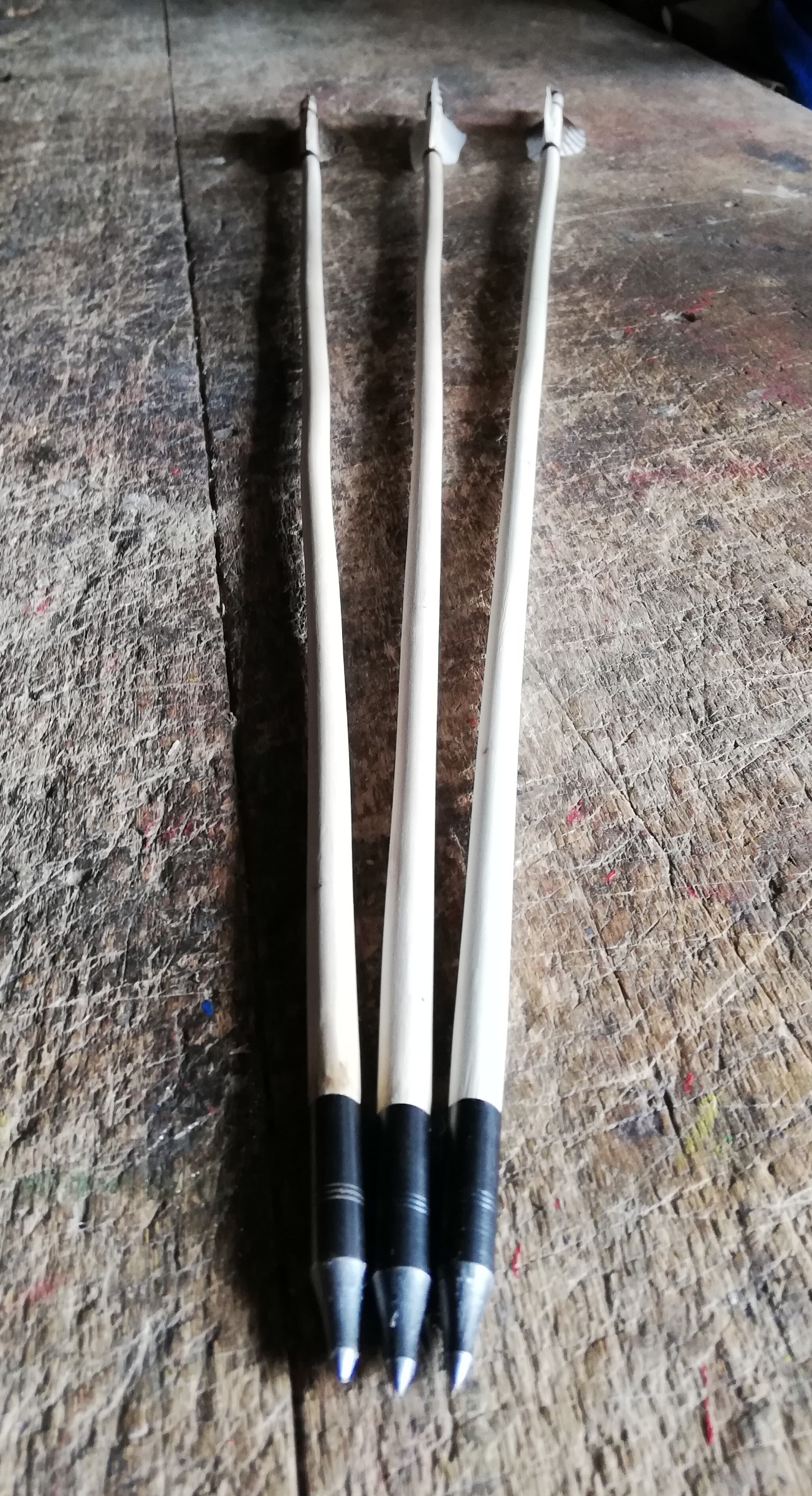 Sie fliegen wunderbar auch wenn sie für meinen 38# Bogen wohl zu schwer geraten sind. Aber fürs erste passt das so.