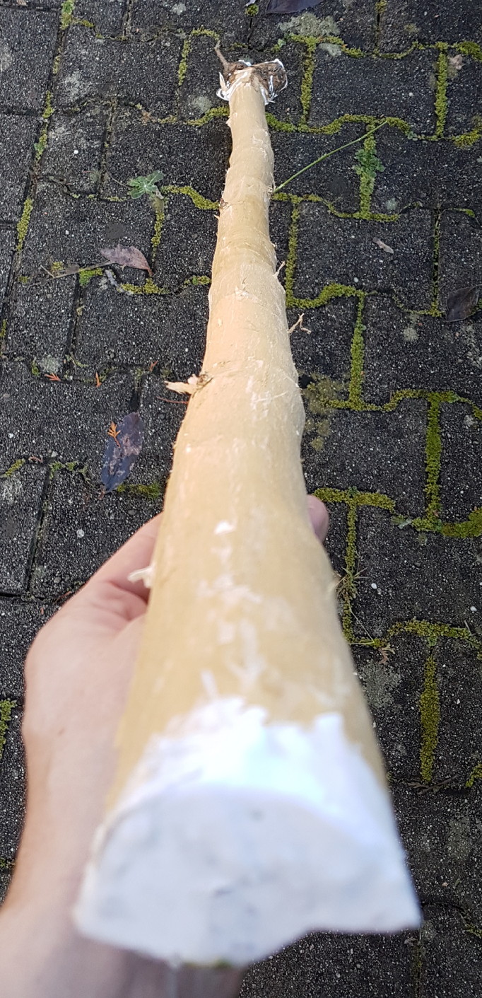 Geschält habe ich ihn dann noch und nun steht er gut an den Enden versiegelt draußen im Kalten.