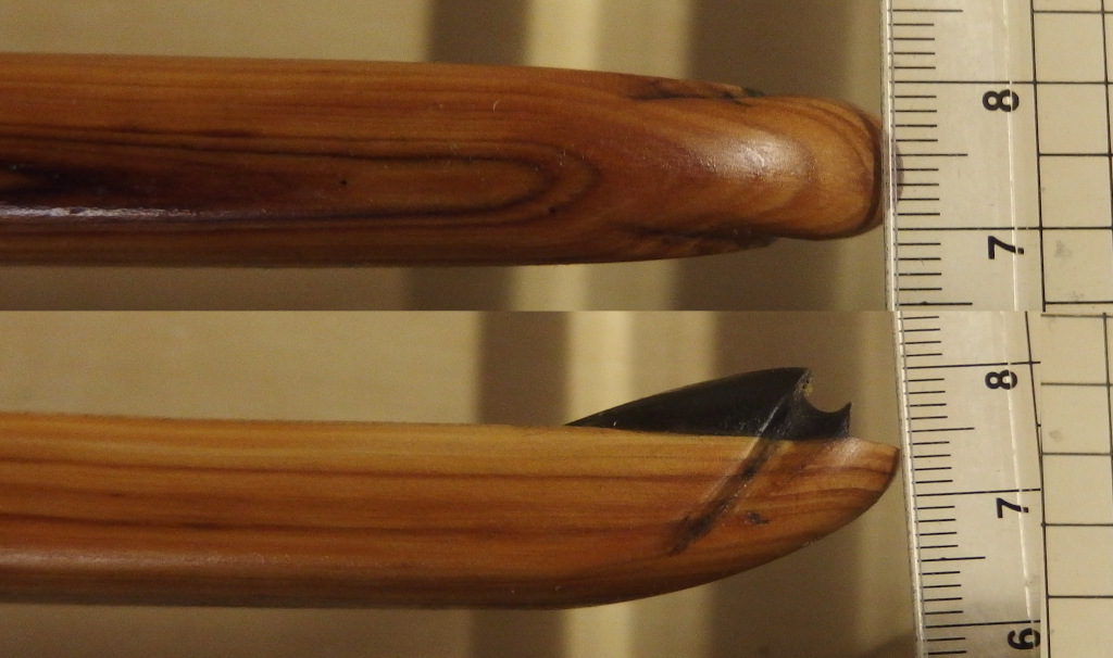 wo ich gerade der Roteiche aus dem Sap eine letzte Schicht Hartöl verpasse, wollte ich das bei der Eibe auch machen, die hat bis jetzt nur Leinölfirnis gesehen. Und dabei habe ich gesehen, dass doch glatt die Spitze eines Tip overlays aus Horn abgeplatzt ist. Die muss ich also erneuern. Meine Tip overlays wirken sowieso etwas zu klobig. Die Tips am Ende sind 12 mm breit und eher noch etwas dicker. Was schätzt ihr ein, bei ca 68# gehen da auch schmälere Tips so z.b. 10mm ohne dass die Biegung am Ende deutlich zunimmt? Oder wäre das Kaffeesatz lesen?