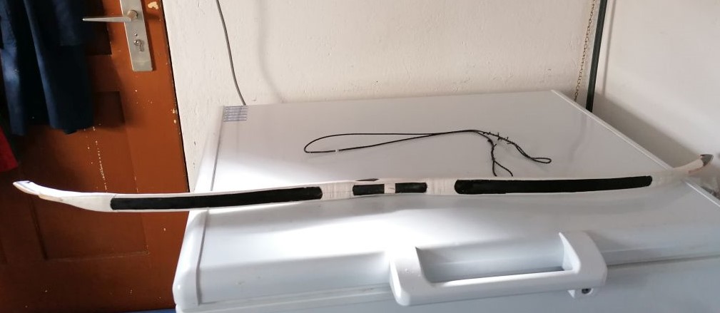 Heute bekam der Bogen sein Ziegenlederkleid. Es ist soweit alles vorgeschnitten , die Feinarbeit mache ich , wenn der Hautleim getrocknet ist.