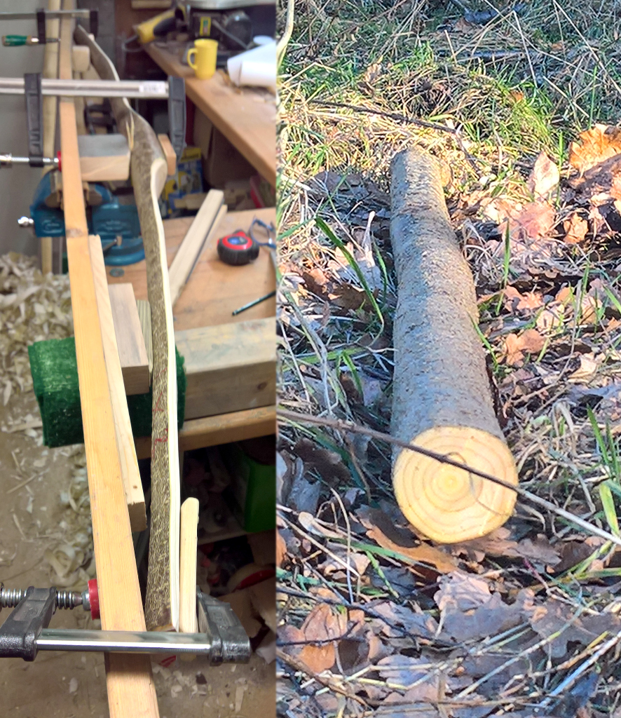 Also wurde am 23.06.2018 auf dem Treffen der Bau begonnen mit der Absicht, einen schießfähigen Bogen zu fertigen. Die Rinde ist aus wirtschaftlichen Gründen auf dem Rücken belassen worden: Wenn das Holz nur zur Nahrungsbereitung beigetragen hätte, hätte ich mich furchtbar geärgert, wenn ich stundenlang die trockene Schale runtergepopelt hätte und der einzige Nutzen vom Holz ein bisschen Glut gewesen wäre...