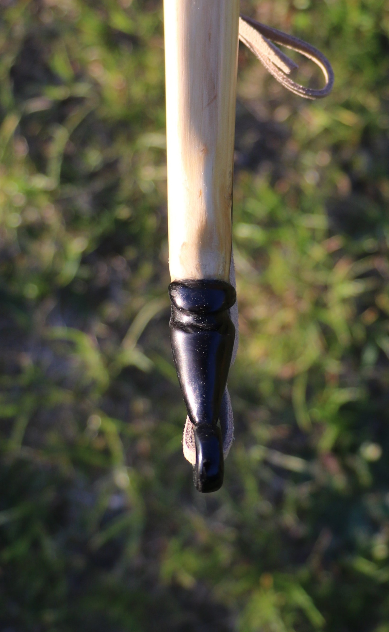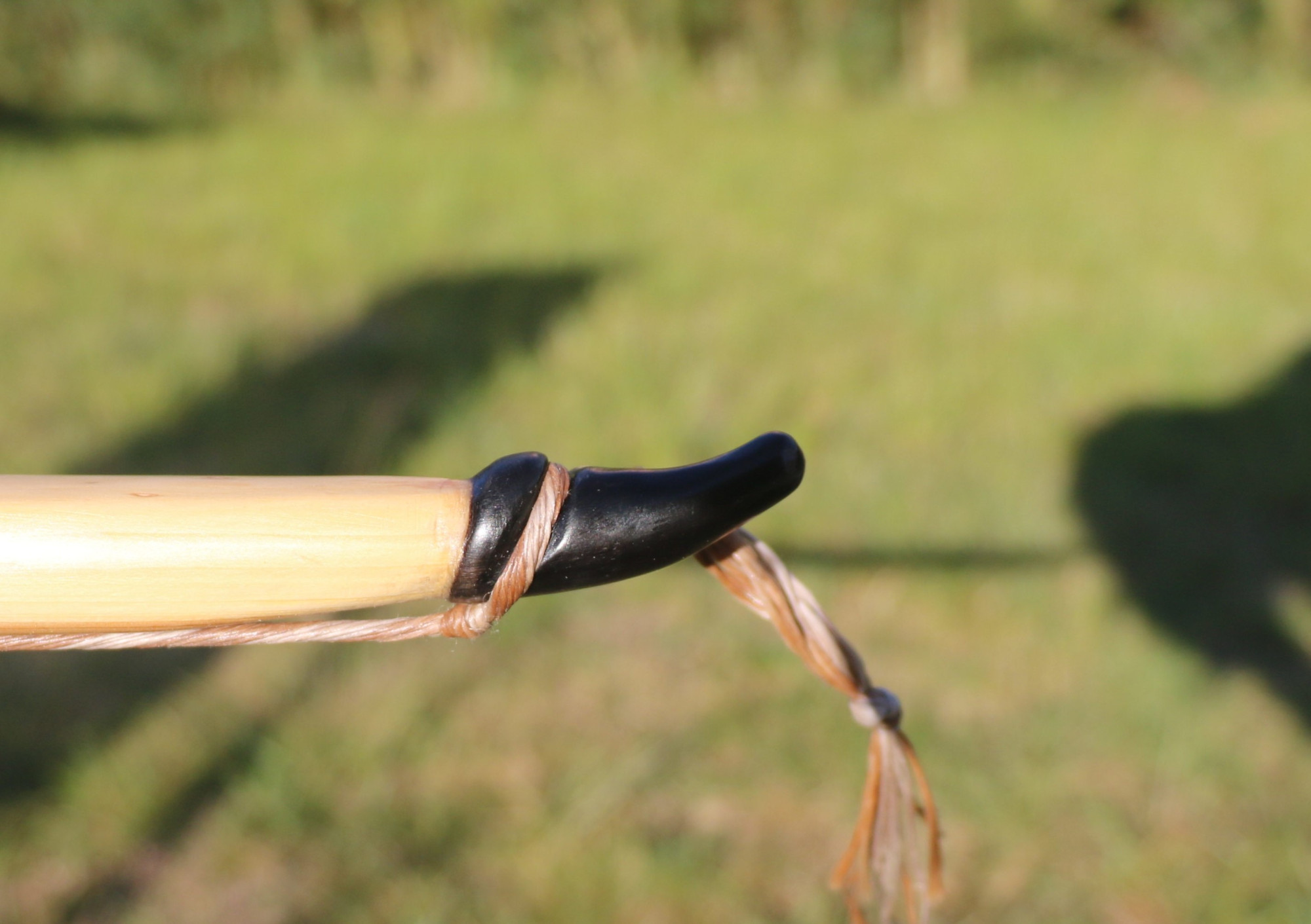 In die Öse kommt noch eine Schnur oder Lederband zum Befestigen der ungespannten Sehne.