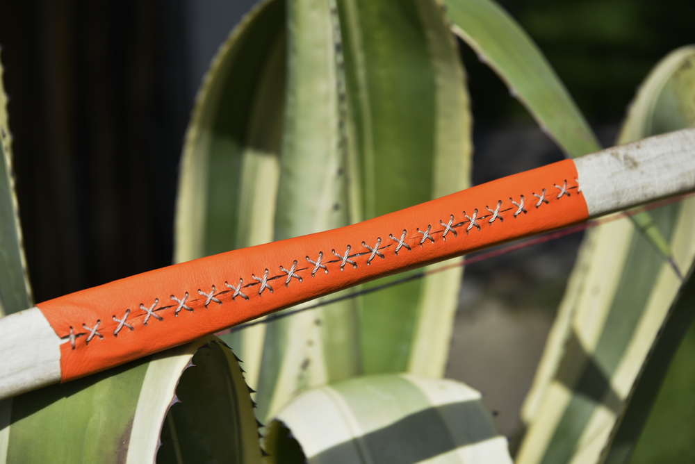 Griffbereich aus Kork und Leder aufgebaut und mit Griffleder überzogen.