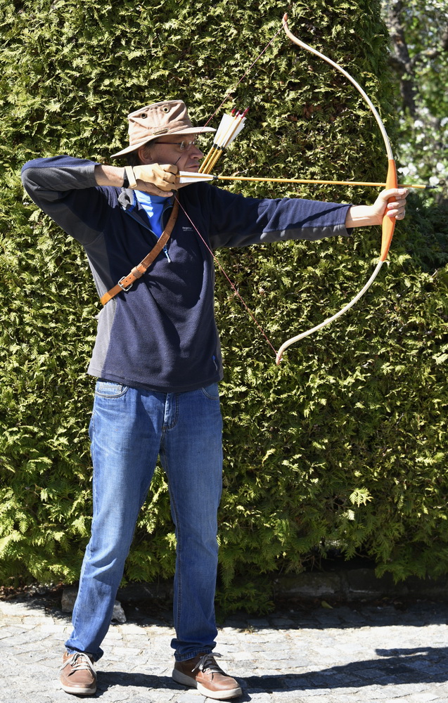 Sehne und Rohhaut haben so in etwa 5 bis 10# Zuggewicht gebracht, so genau kann ich das nicht sagen, es war zuerst ein Bogen mit steifem Griff, dann ist mir der aufgeklebte Griffbereich immer wieder abgeplatzt, hab dann in der Mitte nochmal Sehne aufgebracht....war ein längeres Projekt.