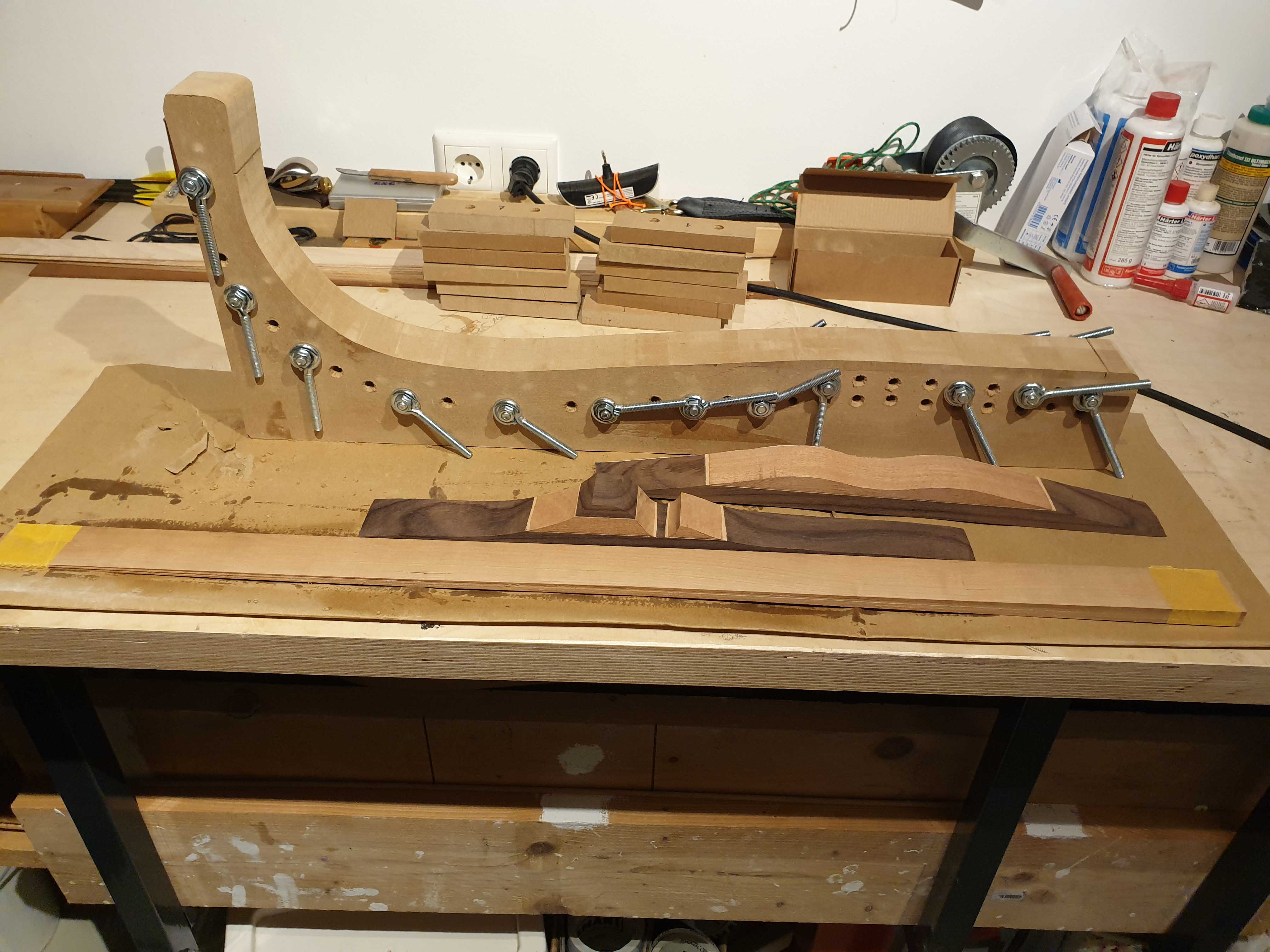 Ich habe ein Template aus Papier auf die Arme geklebt und mit der Bandsäge geschnitten.