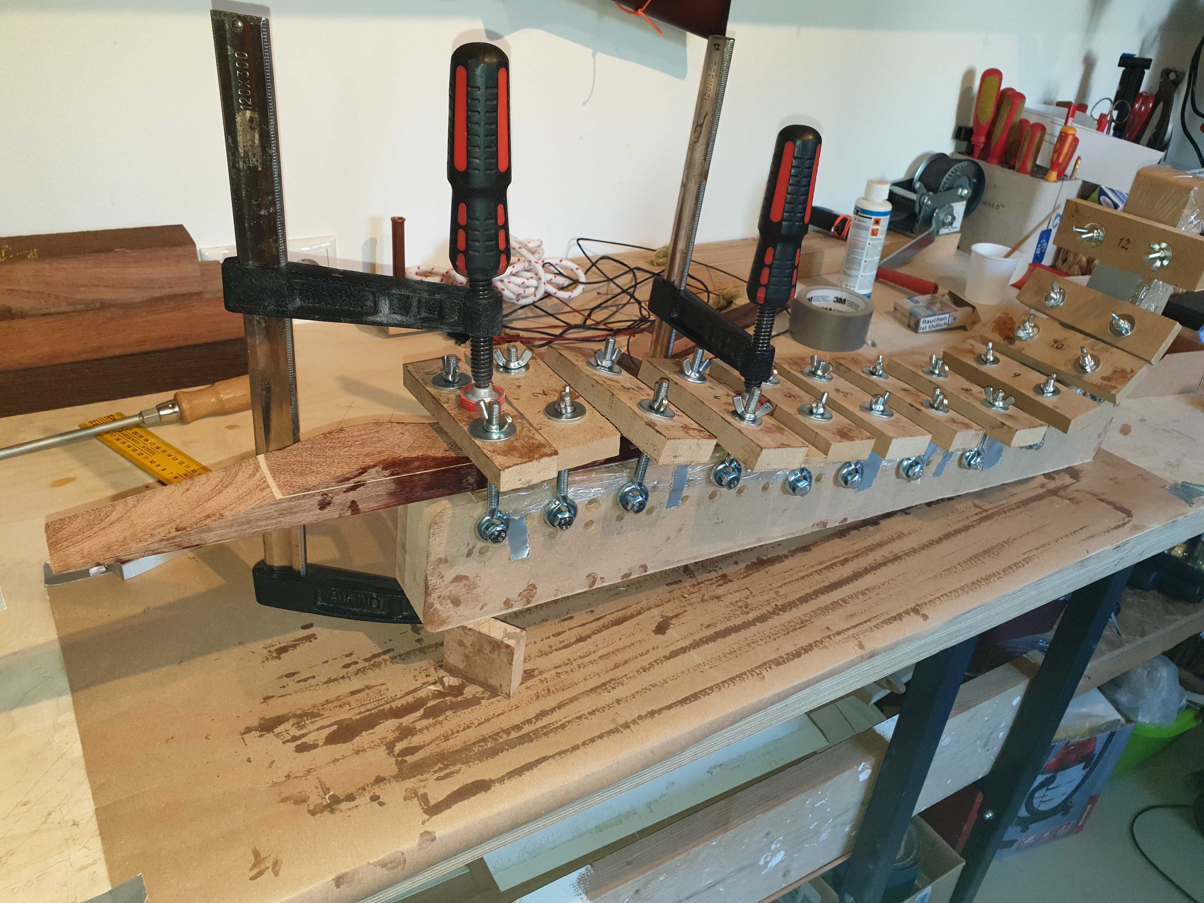 der Bogen ist glaslaminiert. Den hab' ich nicht gedämpft. Einfach Laminate mit Epoxid bestrichen und in die Form gezwängt. Deshalb wundere ich mich ja auch so.