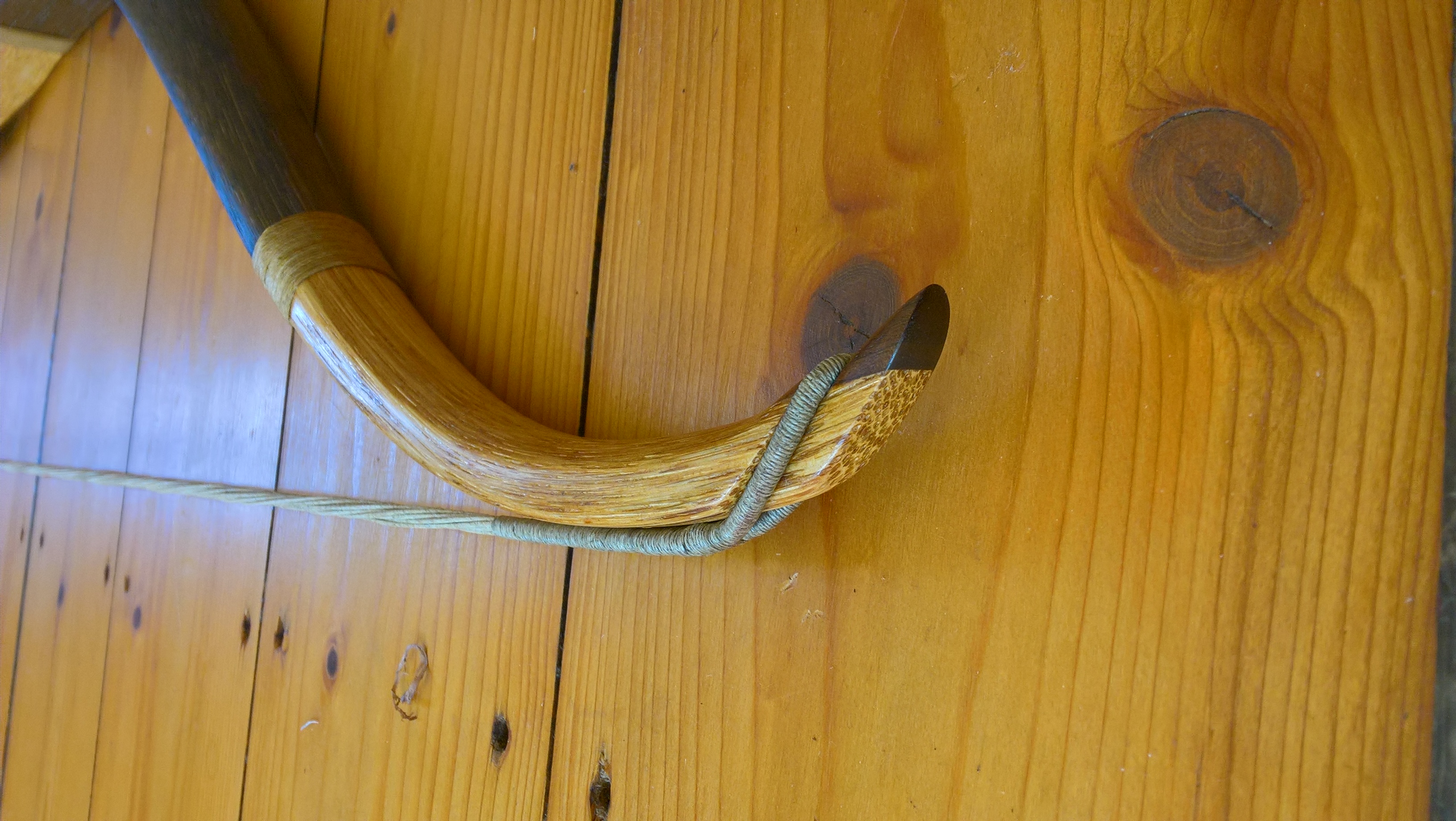 habe mich nach vielen Jahren mal wieder an einen Bogen gewagt. Diesmal einen Recurve aus Manau mit 25# bei 28" und 150 cm Länge für meine Freundin. Pfeilauflage und Tips sind aus Nussbaum, der Griffbereich aus Leder. Die Wicklungen sind nur dekorativ. Als Finish habe ich den Bogen geölt und gewachst. Die Sehne ist eine traditionelle Endlossehne aus Leinen.