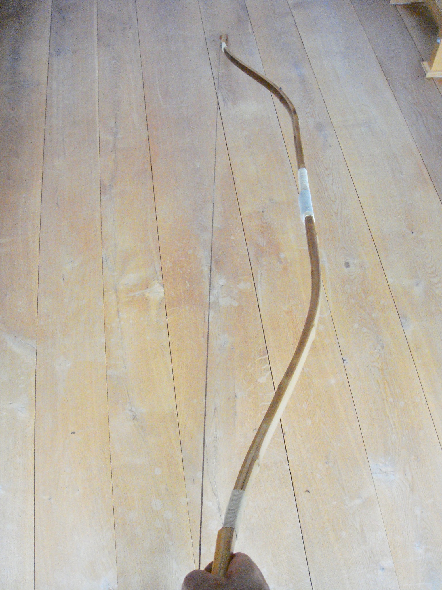 Allerdings verstarb er kurz darauf. Die Bögen und sämtliches Zubehör kamen in den Keller des Sohnes und 2010 habe ich die Sachen bekommen. Der zweite Bogen ist ungeschossen! der erste (und schönere) ist kaputt geschossen.