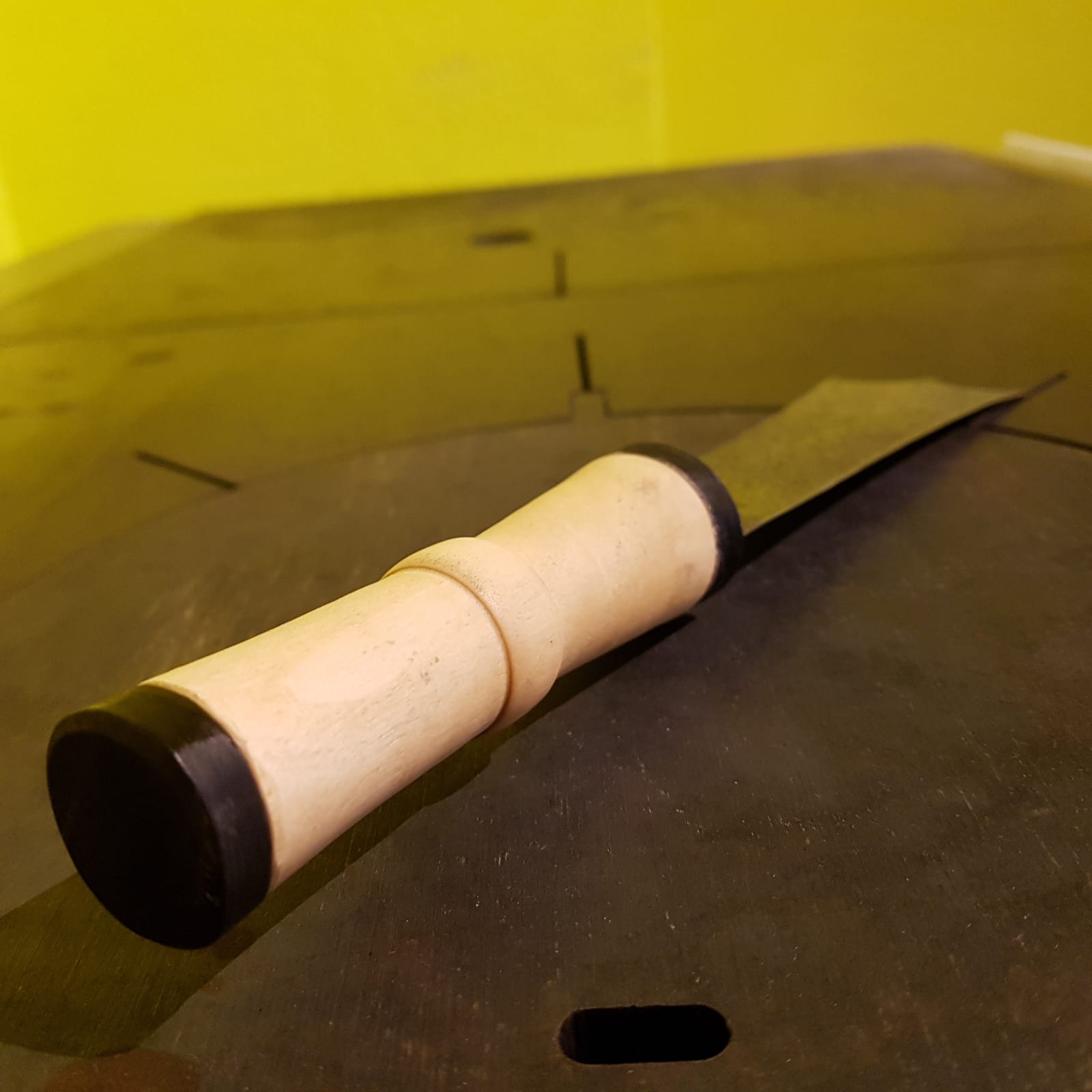 ...und Küchenhelfer für die historische (oder historisierende) Küche in C-Stahl, Edelstahl und Ebenholz (Altbestände und auch aus nachhaltigem Anbau, verarbeite ich heute aber nur noch weil's schade drum wäre).