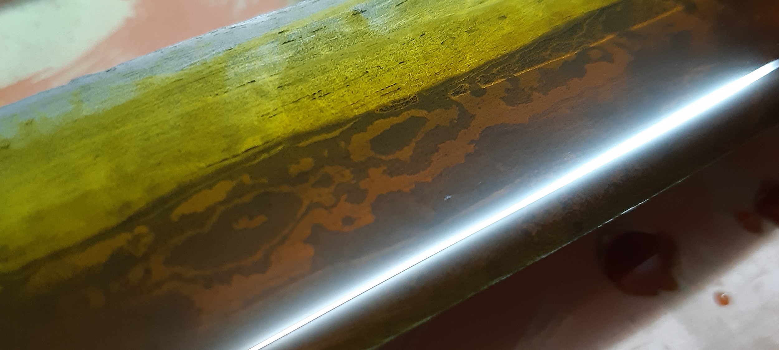Nach dem Schliff bis zur 1000er Körnung gabs ein Bad in Eisendreichlorid und anschließend Kaffee.