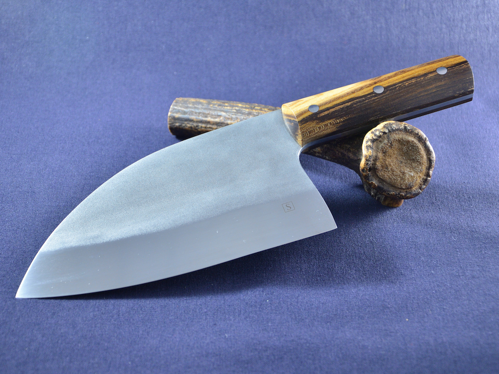 Als Stahl habe ich SB1+ verwendet, ich ein Platte für diese Größe in meinem Bestand. Und für Küchenmesser ist der Stahl eh meine erste Wahl.