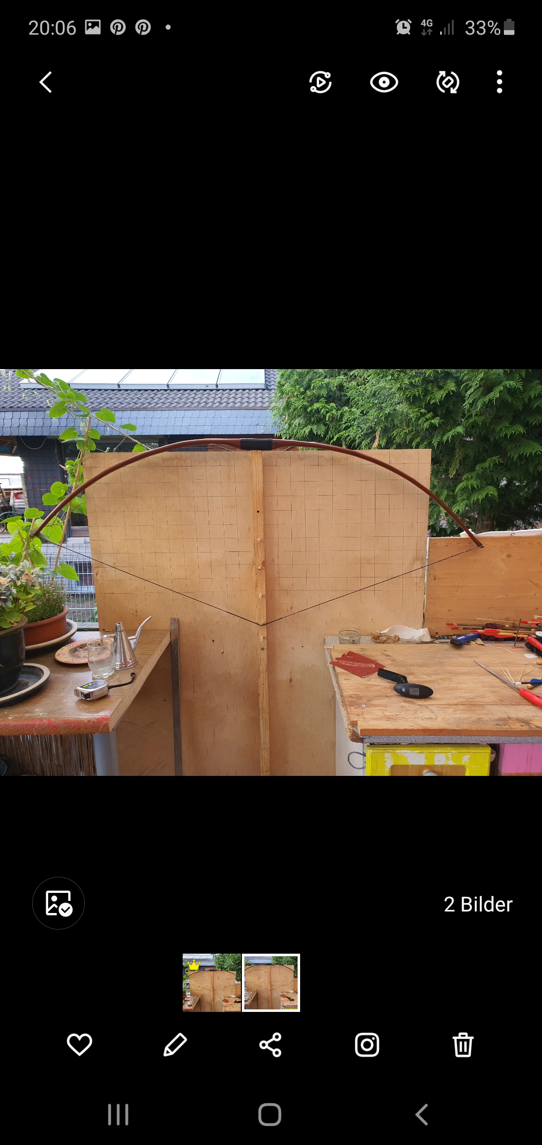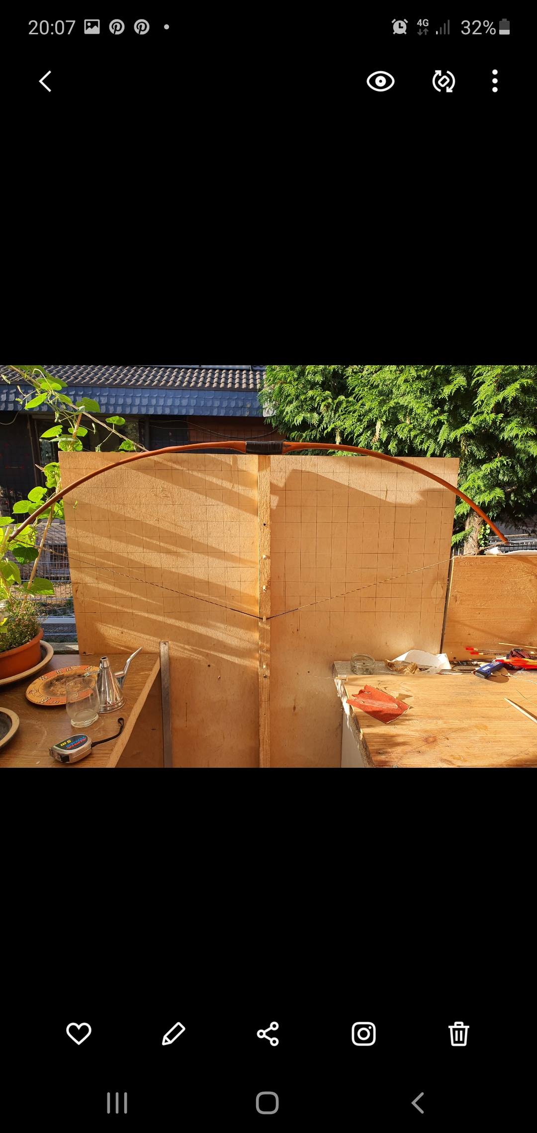 Auf den ersten Blick fehlt den Bögen nichts. Nach Jahren im Keller sollten sie vielleicht wieder ein bisschen Luftfeuchtigkeit aufnehmen aber sonst in gutem Zustand. Die Aufkleber deuten darauf hin, dass der Vorbesitzer damit an offiziellen Meisterschaften teilgenommen hat, das schaut sehr nach Aufklebern von der Bogenkontrolle aus. Wenn Du mal schaust welche Meisterschaften das waren und nach den Teilnehmerlisten im Holzbogen googelst, findest Du vielleicht auch einen Namen der zu dem vermeintlichen Vorbesitzer passt.