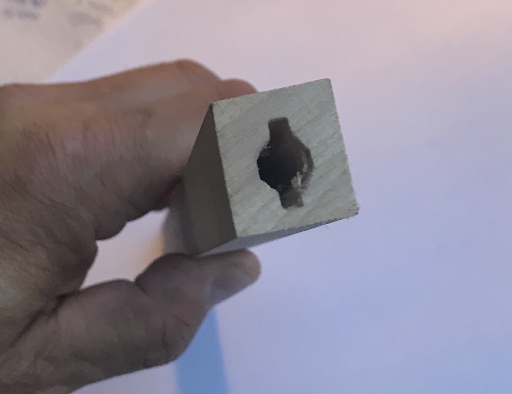 Ich habe die Griffe mit 3, 5 mm auf die Tiefe vorgebohrt und dann quasi die Bohrung für den Erl ausgeräumt. Das dauert keine 5 Minuten je Griff und man kann das recht sauber machen.