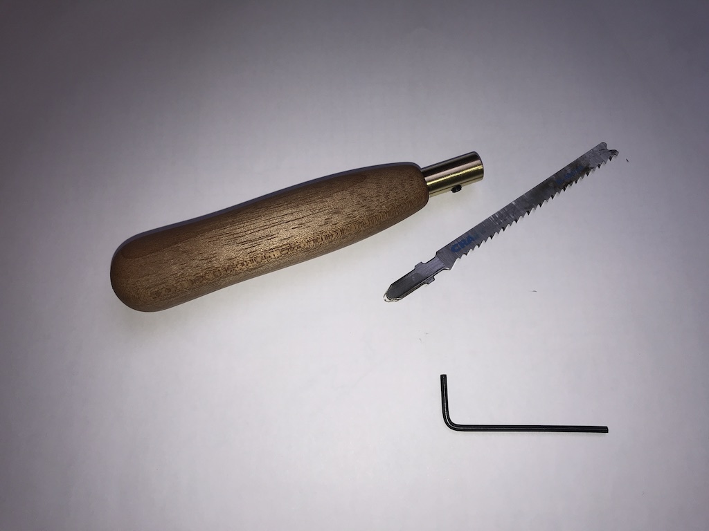 Diese Werkzeug sind eigentlich selbst erklärend, Q&D gemacht. Stichsägeblätter die in Rundstäbe geklebt habe. Die Sägeblätte kann man dann nach belieben umschleifen, Nummer 2 habe ich z.B. sehr dünn geschliffen.