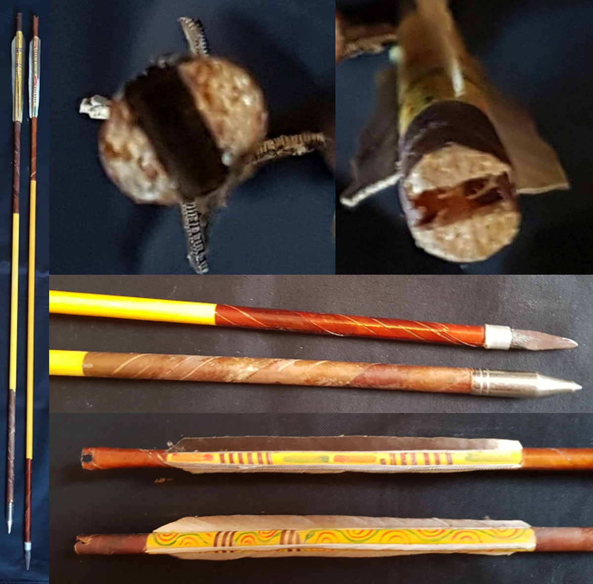 Auf keinem der sechs Turniere habe ich solche Pfeile im Einsatz gesehen, obwohl die Hälfte der Turniere ausdrücklich auf traditionell ausgelegt waren und sehr viele traditionelle chinesische Horn-Sehne-Bögen geschossen wurden. Ich hatte den Eindruck alle dort schießen die selben billigen Bambuspfeile vom Großhandel die fast so aussehen wie hier, außer dass die Nockwicklung bis zur Feder geht und mehrfarbig bunt ist.