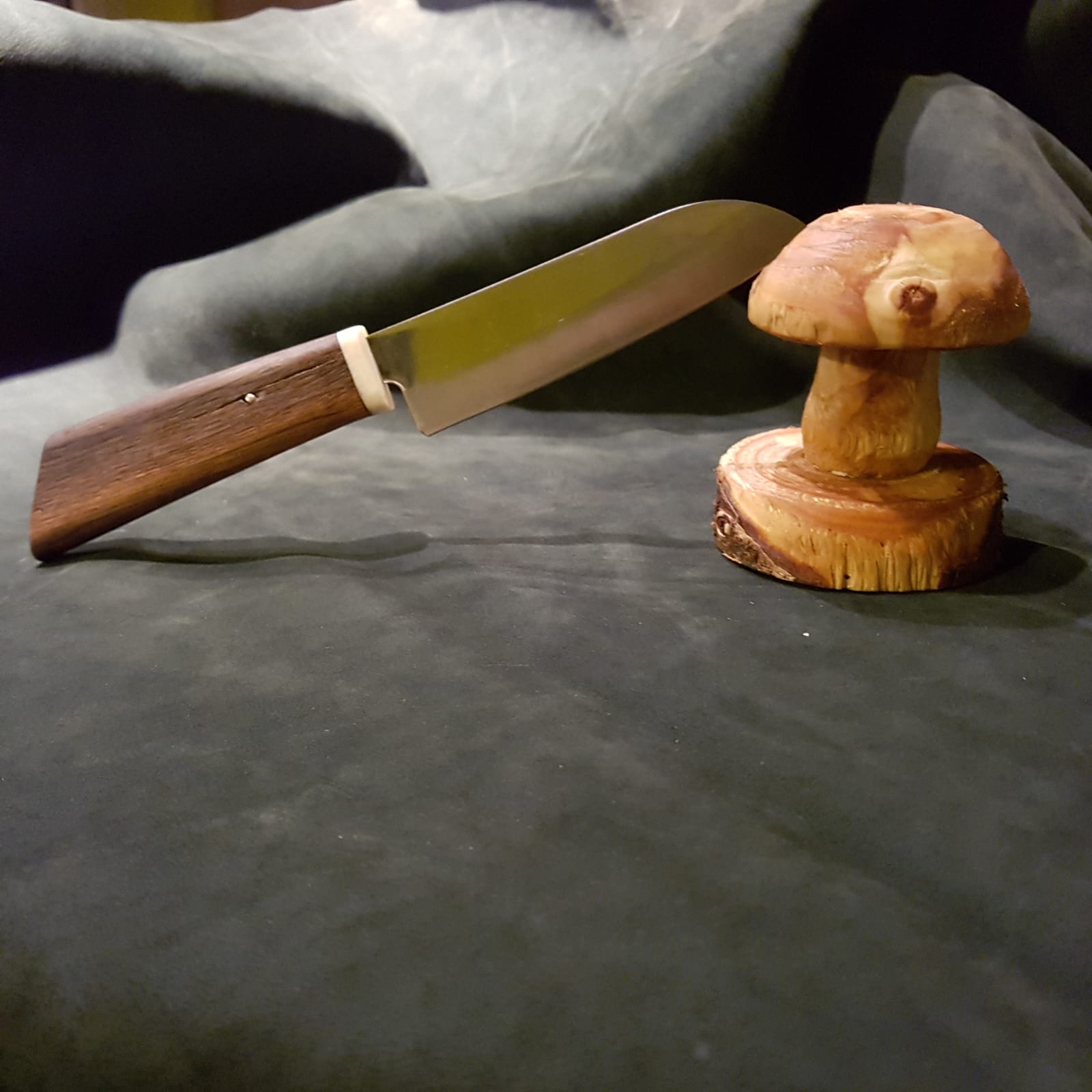 Ich glaube, ich verstehe, was Du meinst. Aber die Klinge gibt halt in ihrer Form vor, wie weit sie eingelassen wird. Und der Griff ist so dimensioniert, dass ich noch was in der Hand habe, sonst wäre er mir zu dünn. Weiter über den Klingenrücken raus zugehen, habe ich probiert, aber das störte mein Gefühl für Ästhetik.