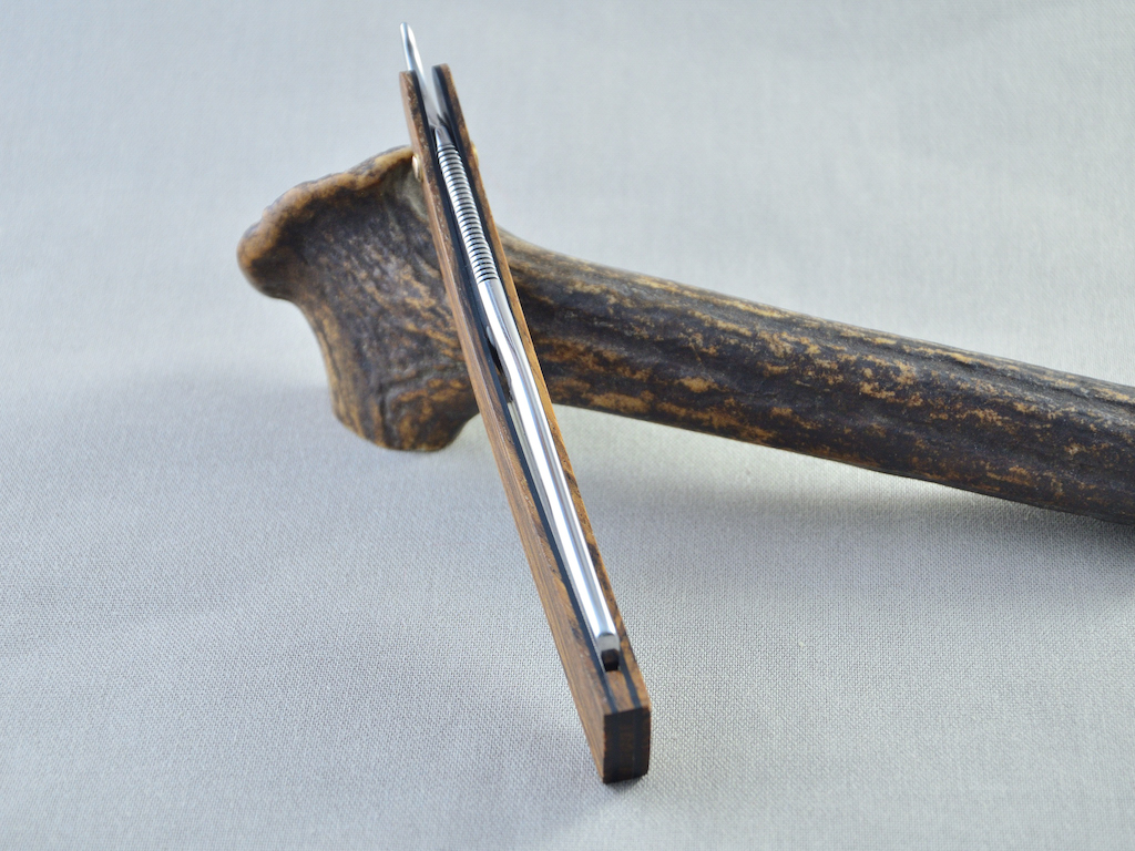 Griff: Stabilisiertes Zebrano, G10, Bronze Niete und Scheiben aus Messing