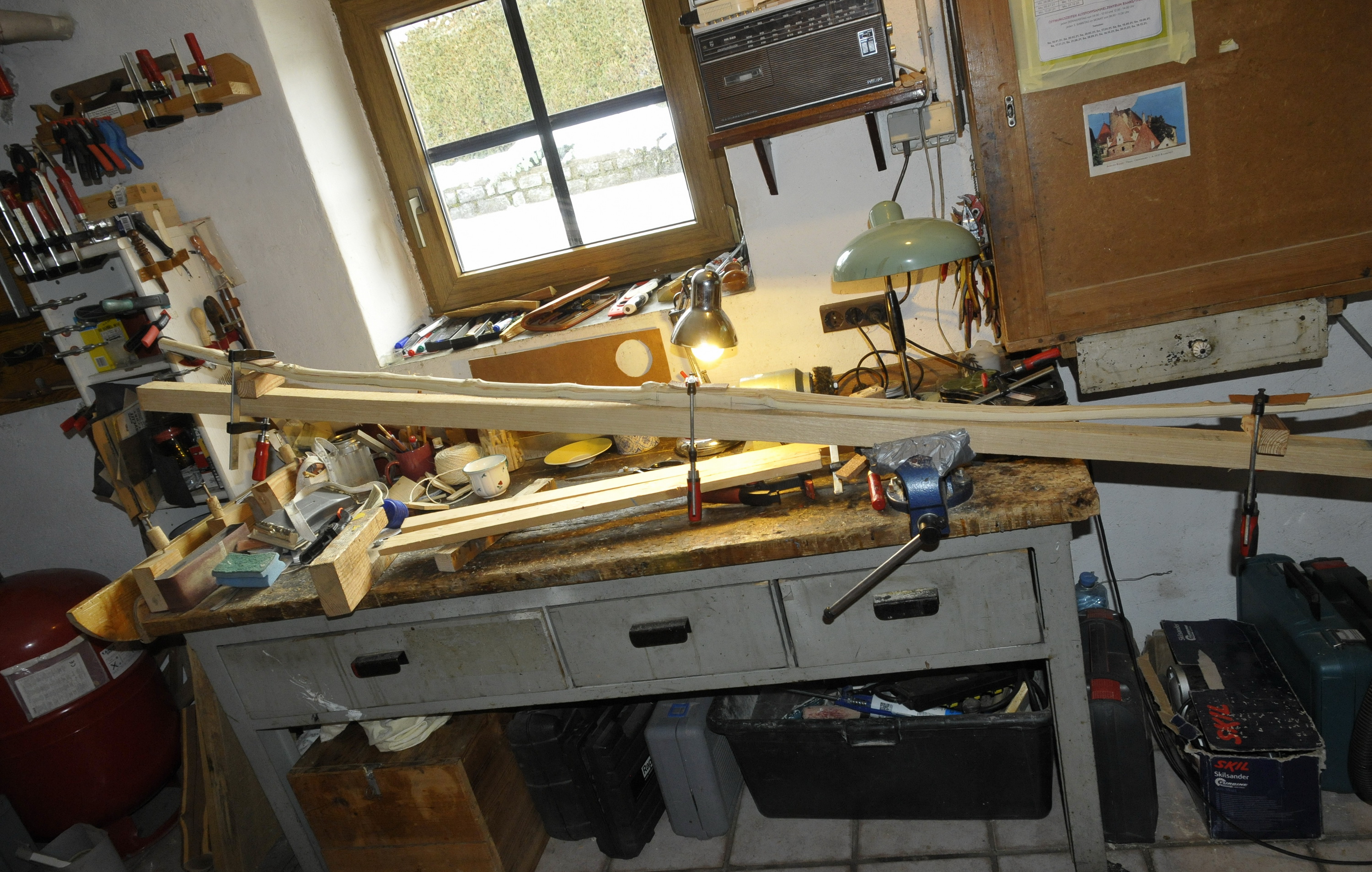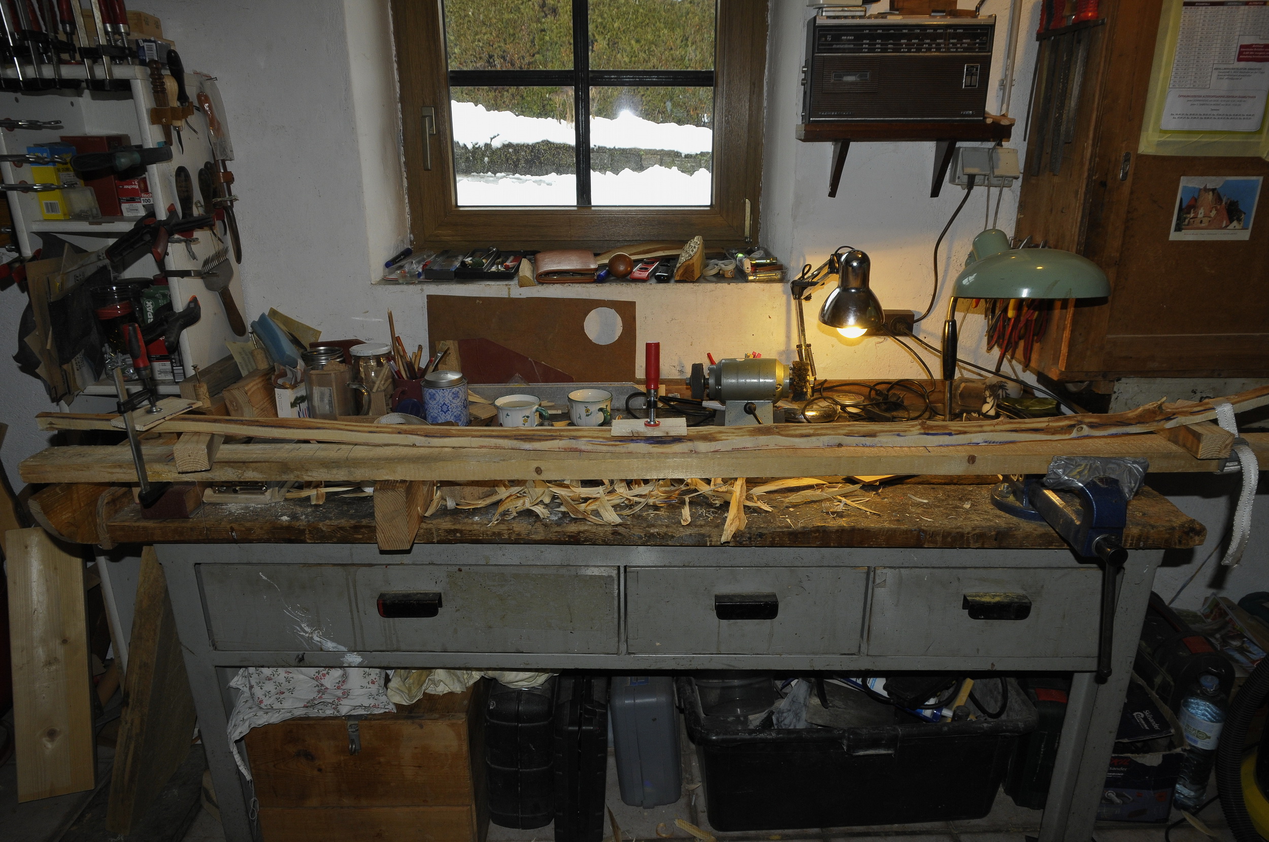 Nach dem Tillern habe ich den Stave wieder eingespannt um ihn etwas zu korrigieren (Sehnenlage).
