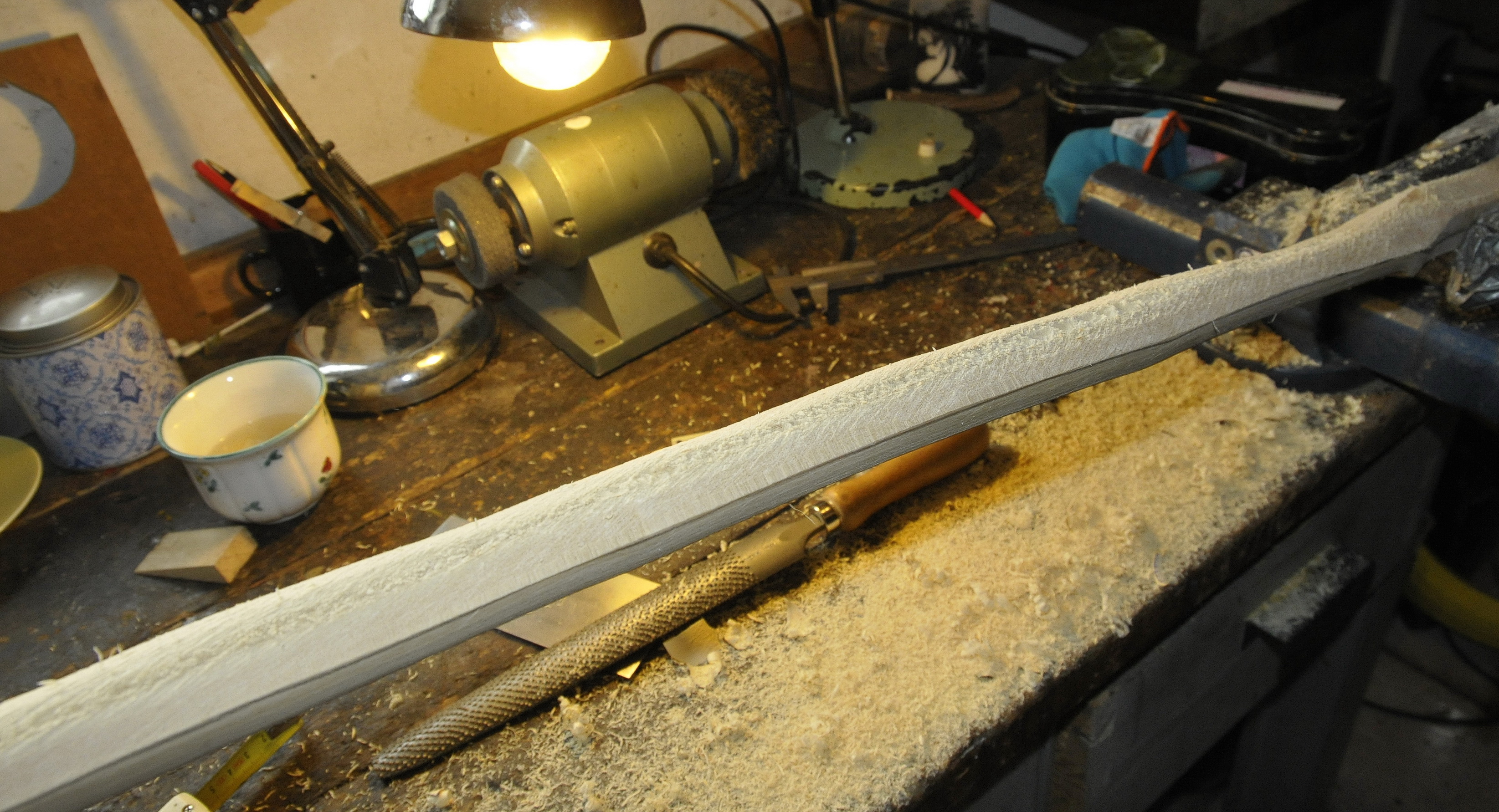 Den Holler habe ich heute weiter verschlankt, die Form herausgearbeitet und die Dicke angerissen.