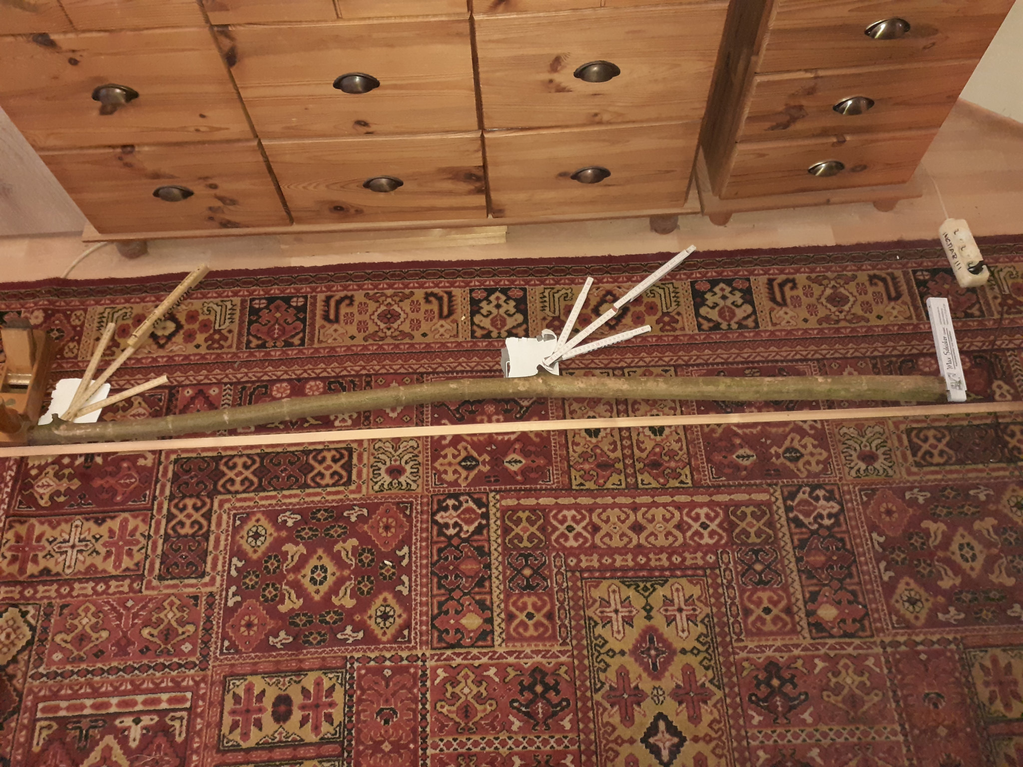 Was Anderes: woher die 4,5cm mittlere Dicke kommen. Auf einem Bild sieht man ganz gut,das er breiter als hoch ist. Die etwa 6cm Breite am unteren Ende ist seitlich,also kann ich nur den flacheren Teil nutzen.Hartriegel nehm ich normalerweise lieber hochkant,wenn er einen elliptischen Querschnitt hat,das ist hier nicht möglich.... egal,er ist ja knapp dick genug.