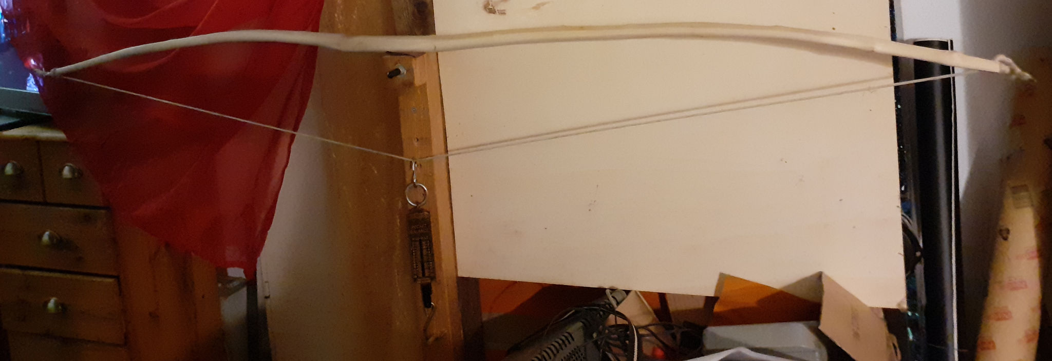 Im Moment sinds nur noch 6,5kg/10cm Zug aka ca 93#@32" bei geplantem Vollauszug (hochgerechnet,lineare Auszugskurve vorausgesetzt).Viel zu viel