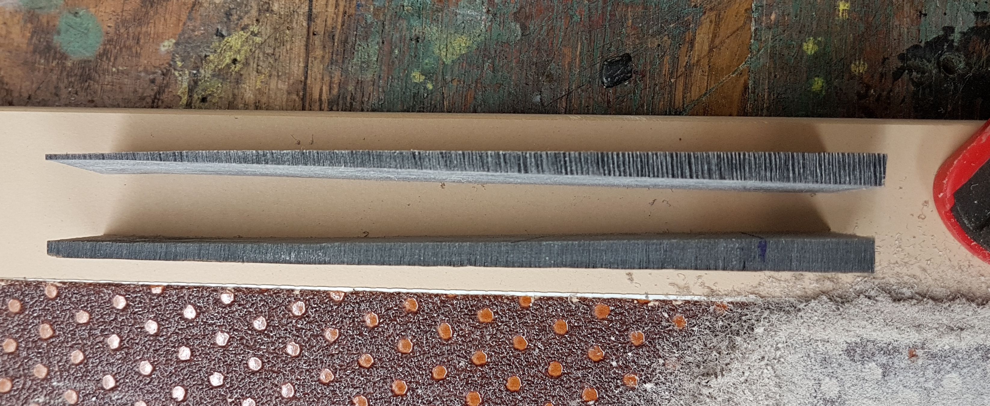 Ein fast passender Keil lag noch in meiner Grabbelkiste. Weil's draußen schon zu dunkel war, hab ich mich für Handschliff entschieden, der Keil war deutlich zu dick.