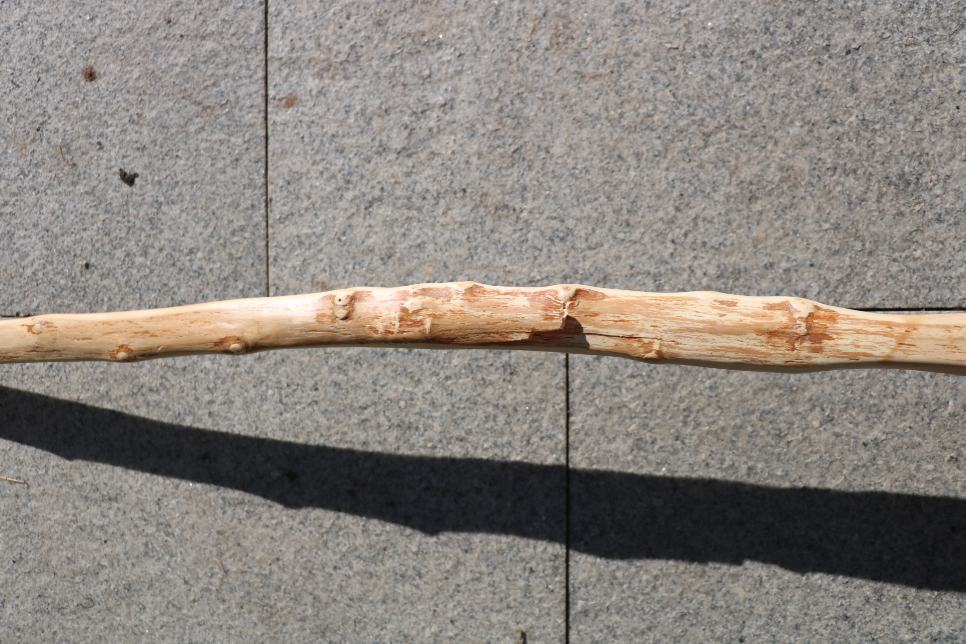 Ich habe mir die Stelle nochmal angesehen. An dem Ast, der am Bauch zu sehen ist, ist im Bogen viel dicker als das Holz vor und nach dem Ast. Siehe Bild!