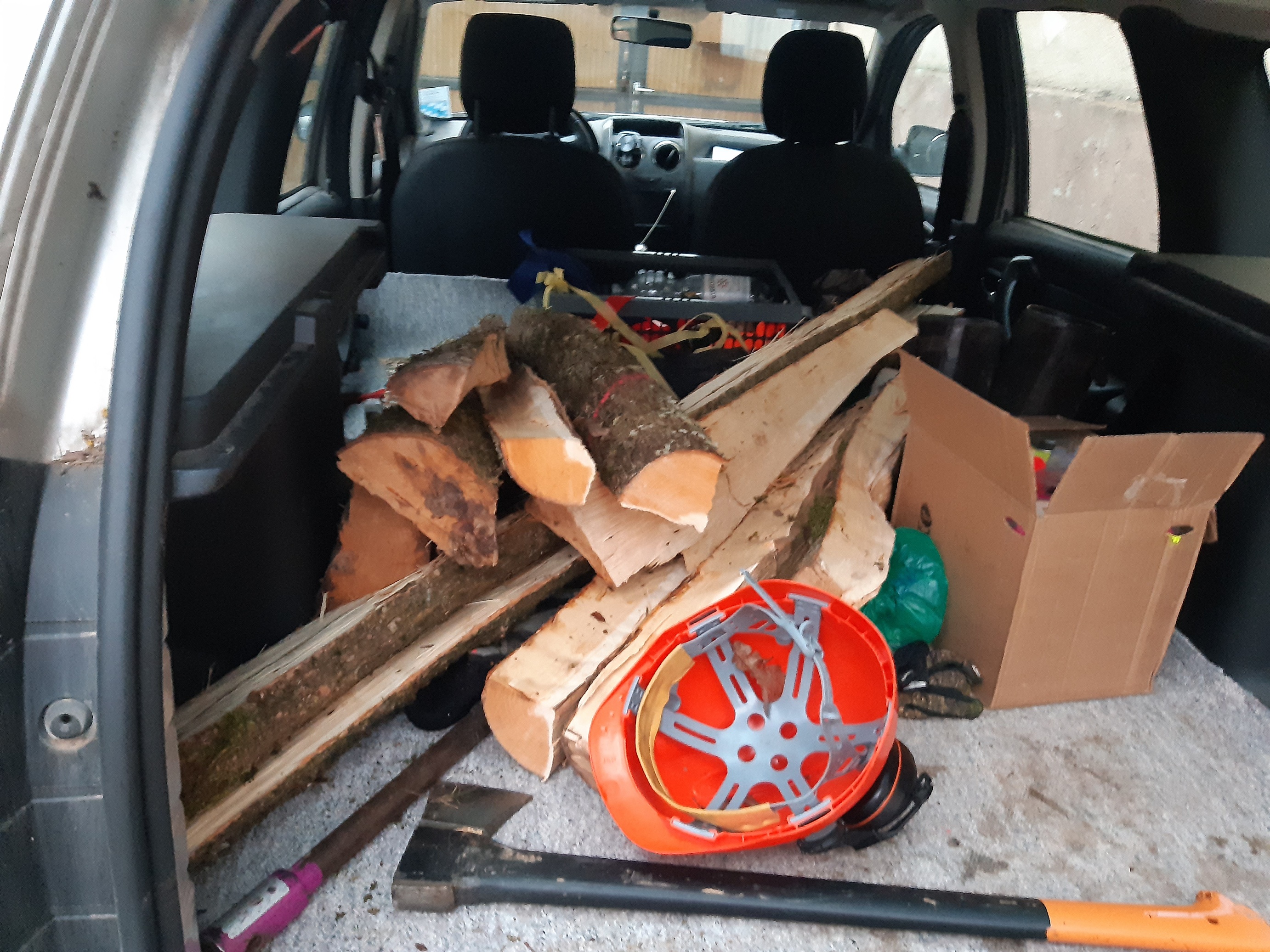 Im Zuge einer Erstdurchforstung und der damit einhergehenden Anlegung der Rückegassen musste diese Elsbeere in mein Auto ausweichen. Da sie doch bischen Drehwuchs hat hab ich sie zu Billets geschnitten.