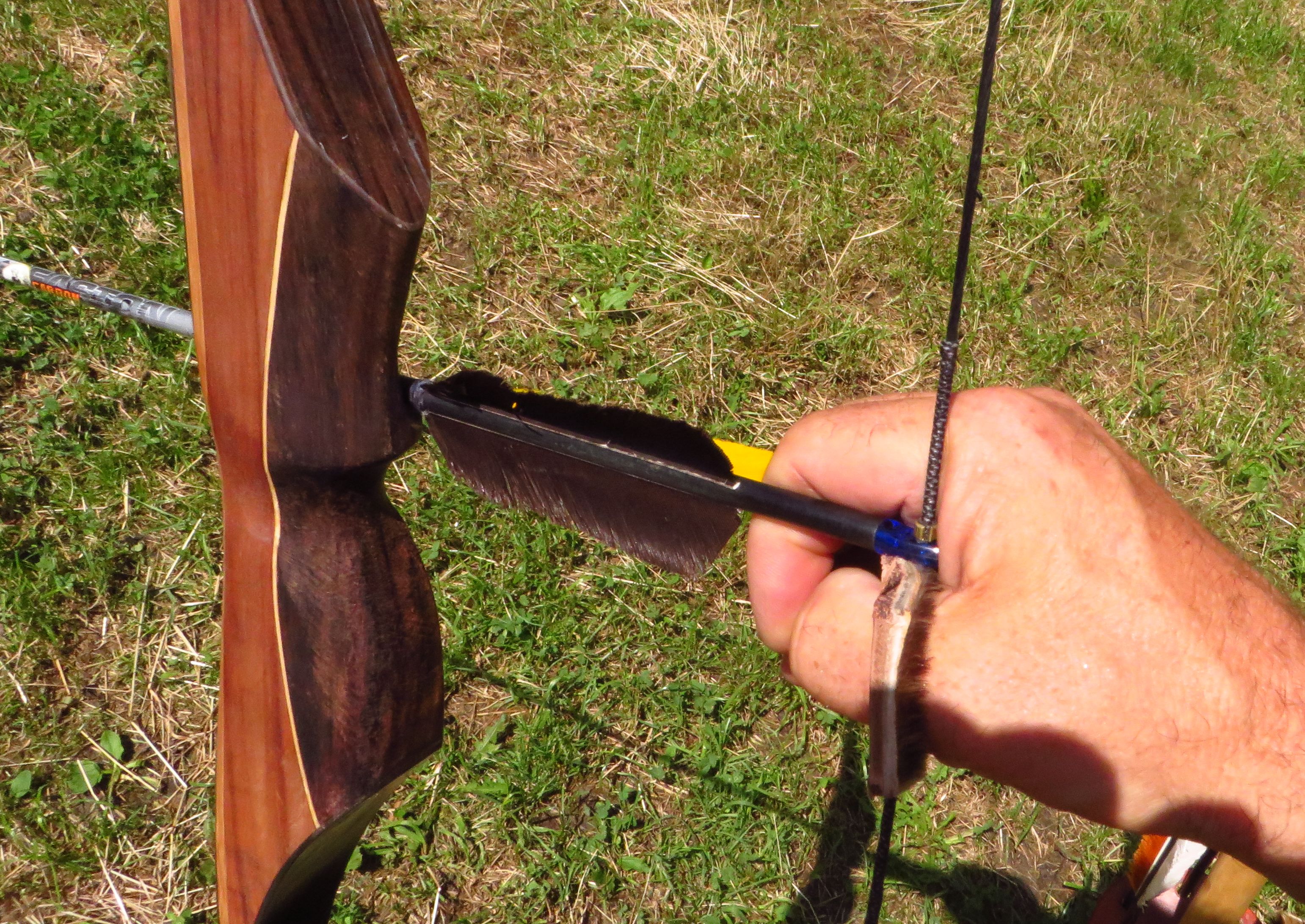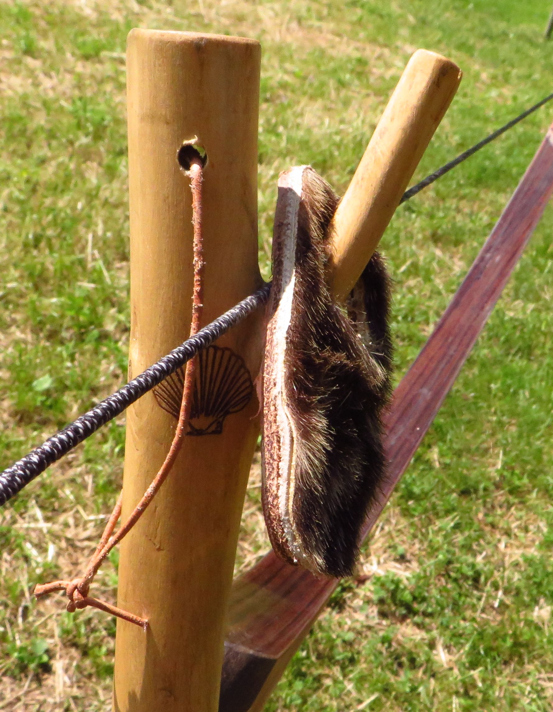 Nachdem ich eingie Daumenringe probierte, habe ich mir jetzt mal schnell einen Daumentab gebaut und heute geschossen. Das fühlt sich ganz angenehm an. Dieser hier besteht aus 2 Lagen Leder und dann Seehund Fell als äußerste Lage.