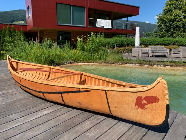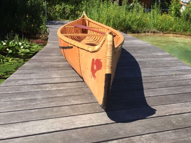 Hallo! Birkenrinde mal anders verwendet. Möchte mein Sommerprojekt praesentieren. ‘Dragonfly” sein Name: Algonkin Birkenrindenkanu 4m lang, 89cm breit, in der Mitte 35cm hoch. Bauzeit 5 Wochen (alleine und ich muss ja noch arbeiten). Ich habe meinen Jugendtraum erfüllt.