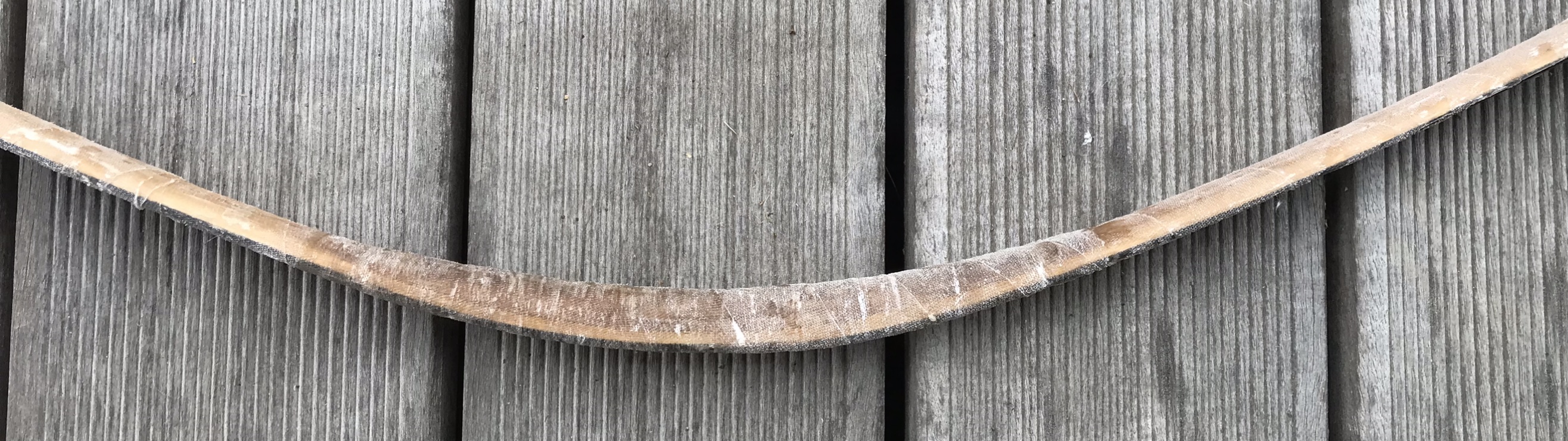 Ja der untere Wurfarm biegt griffnahe etwas mehr als der obere WE. Ist auch kürzer. Aber Knick ist keiner. Der Schatten und der Griff verstärken das im Bild, ist aber nicht ganz so schlimm, aber ich werde mich beim nächsten Bogen noch mehr bemühen. Der Griff ist Geschmacksache. Ich orientiere mich an den Originalbögen und da wird und wurde er so gebaut. Das Rohhautbacking ist halt ein super Schutz für die Sehnen, wasserfest verleimt auch ein Regenschutz. Ausgesprochen stabil, sodass Du mit dem Hammer drauf hauen kannst. Die Ziegenrohhaut, die ich verwende ist 0,2mm dick! Und 2 Streifen für einen Bogen wiegen 8 Gramm. Aber ich lerne gerne. Was würdet Ihr stattdessen verwenden?