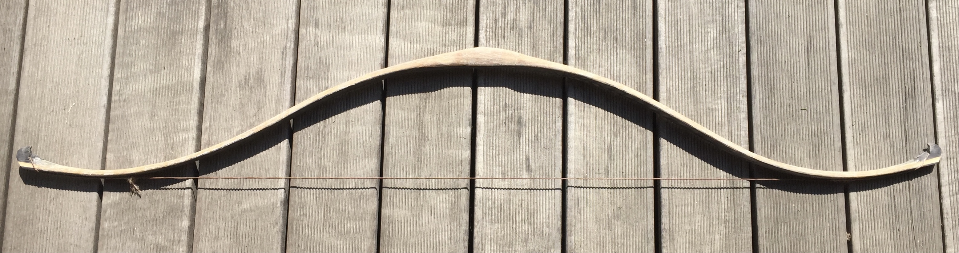 Der untere WA scheint direkt nach der Wicklung einen leichten Knick zu haben, auf den Fotos mit Standhöhe kann man das gut sehen. Wenn man sich allerdings die extreme Biegung verschiedener koreanischer Bogen ansieht, ist das hier nichts.