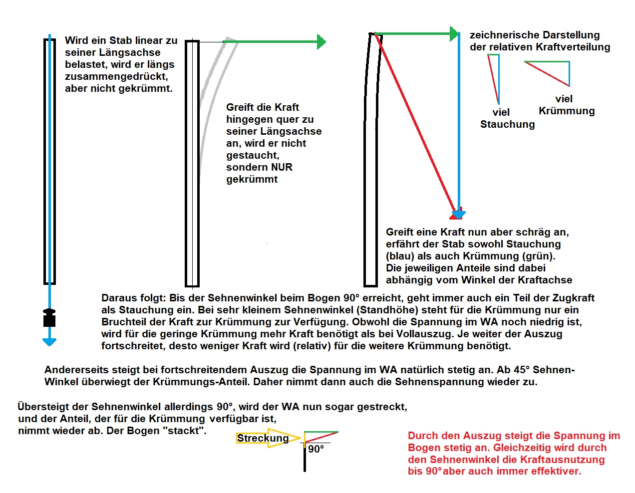 Gute Zusammenfassung Rabe. Aber auf das Wörtchen "relativ" nochmal eingegangen. Spannung des Bogens gegen Sehnenwinkel. Beides steigt im Auszug. Wie schaut hier eine gute Auszugskennlinie aus. Kann man das so lassen?