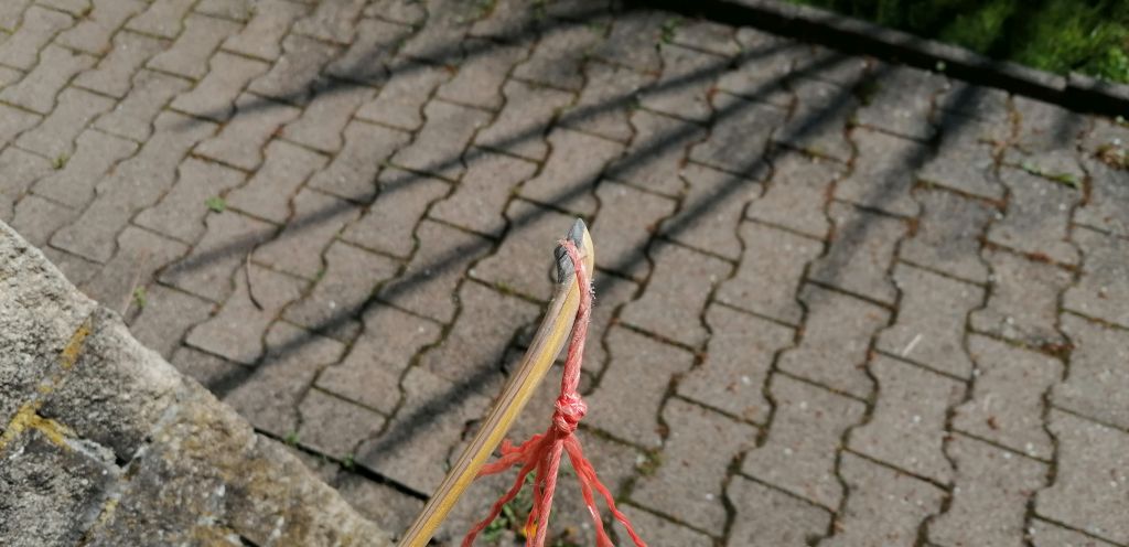 Schön, schön, ich kann mir vorstellen dass der Bogen mit einer richtigen, dünnen Sehne noch deutlich schneller ist. Kann aber sein dass es den Bogen dann zerreißt.