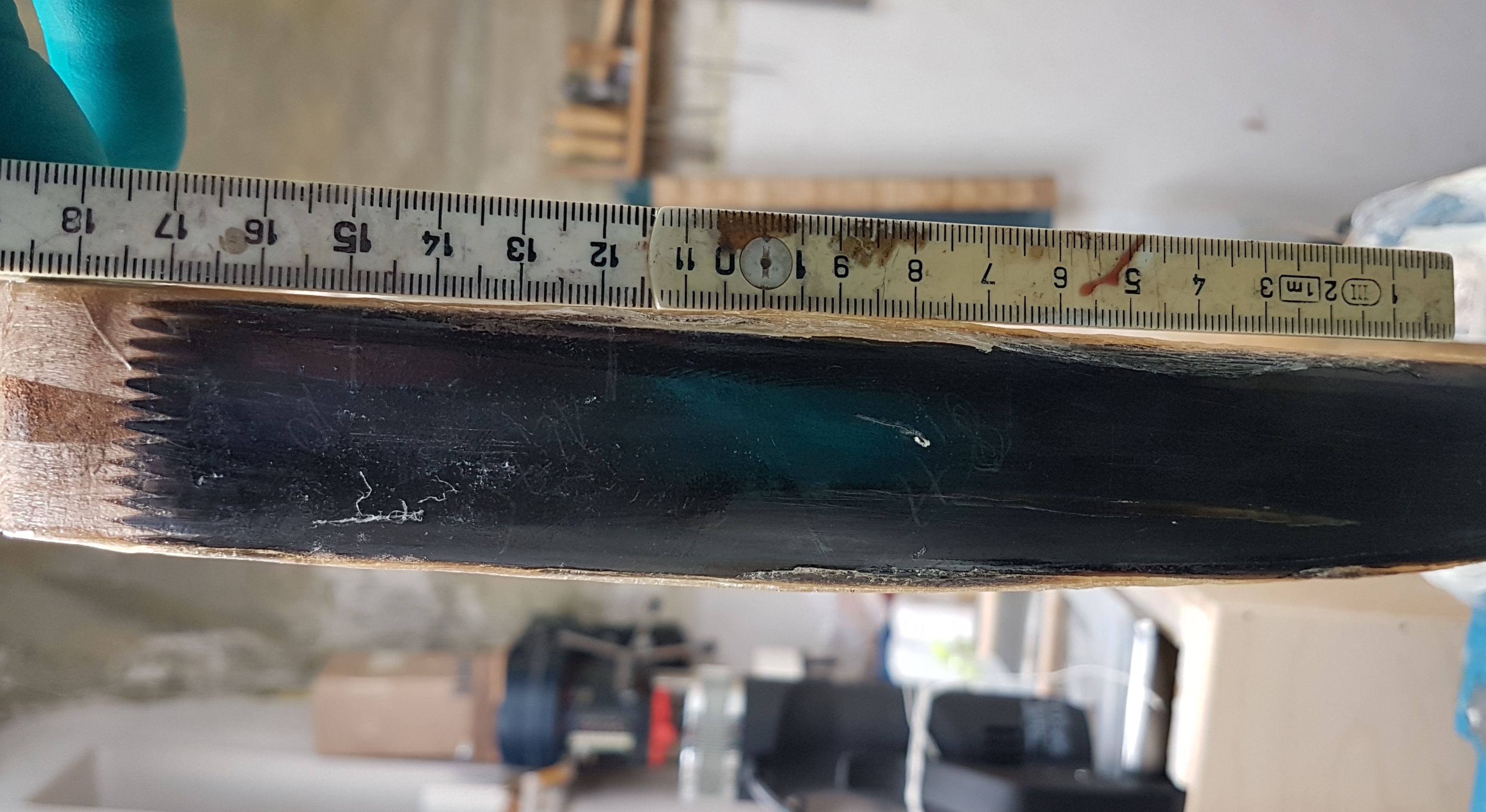 Und hier dann ein garnicht so schönes Weihnachtsgeschenk - Längsrisse im Horn, mal sehen wie die sich jetzt noch weiter entwickeln und wie ich dann damit umgehe oder ob ich wieder von vorne anfangen muss