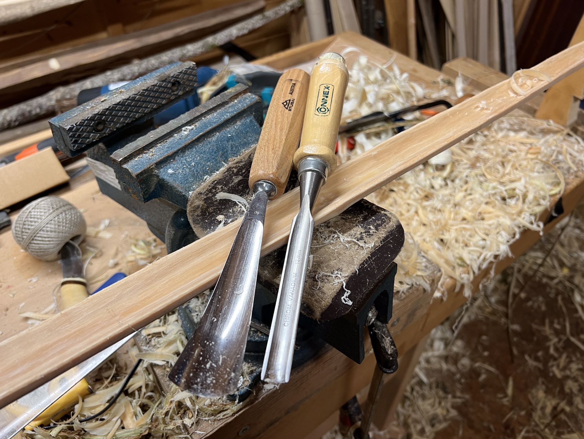 Danke für die Tipps! Werde es versuchen. Der Schlangenbogen ist der Hasel den mir die Rehe gezeigt haben. Der dünne Holler die Dachrinne (HLD). Der Dicke Holler hatte das viele Gammelholz im Kern, habe das Gammelholz beim Herunterarbeiten auf einen 1cm vollständig weggekommen, wird ein Paddelbogen im Design der Westküstenindianer. Aus dem Haselabfall wird jetzt ein Osmane (zumindest im Kopf). Da Epoxy verwendet werden darf, sollte der Rahmen in 2 Tagen soweit fertig sein, dass die Sehnen …….., schauma, LG Stephan