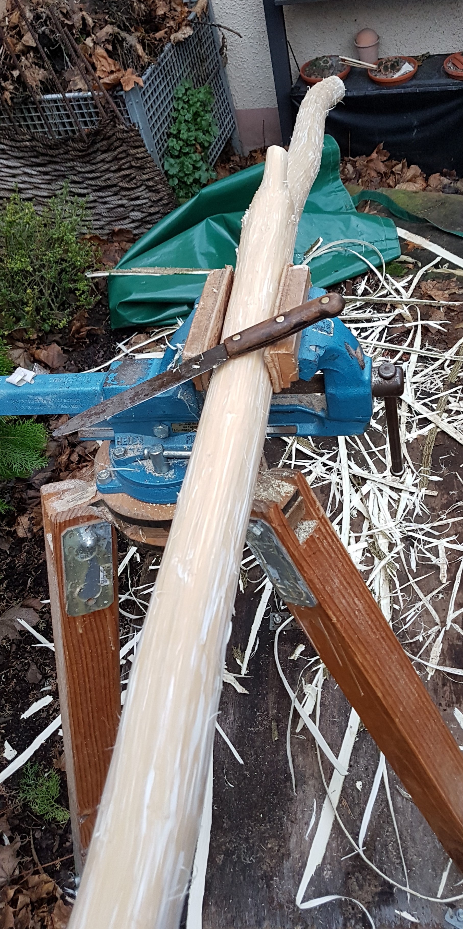 - hier gekürzt auf ca. 215 cm und die Enden mit Holzleim eingeschmiert