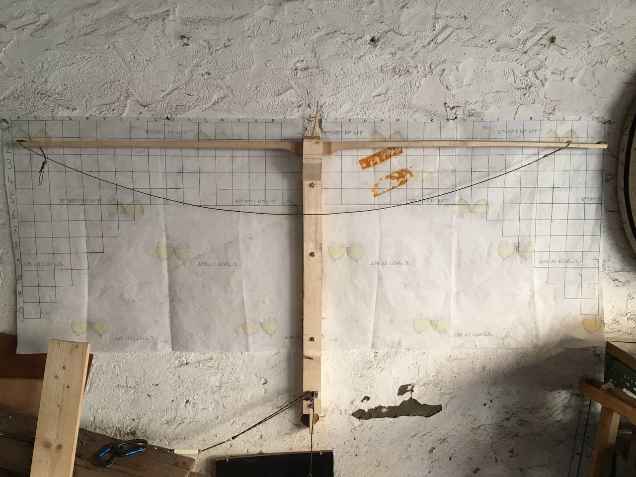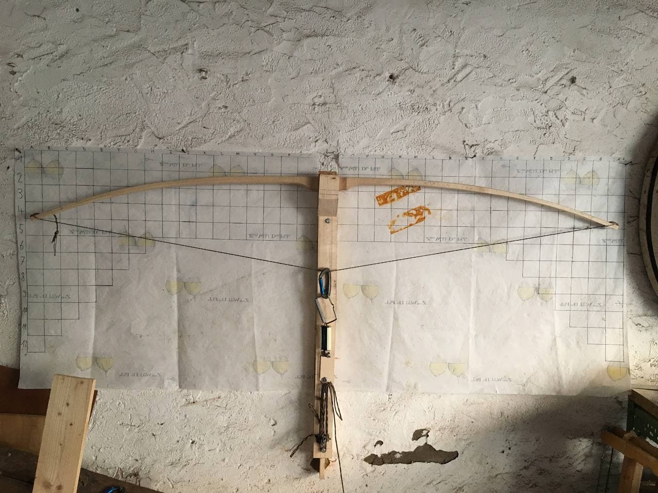 Soll ein Eschen Flachbogen werden im pyramidalen Design. Insgesamt is er 190 cm lang und in der Breite verjüngt er sich gleichmäßig von 5 cm an den Fades auf 1.4 cm an den Tips. Der rechte Wurfarm ist ca. 3 cm länger als der linke.