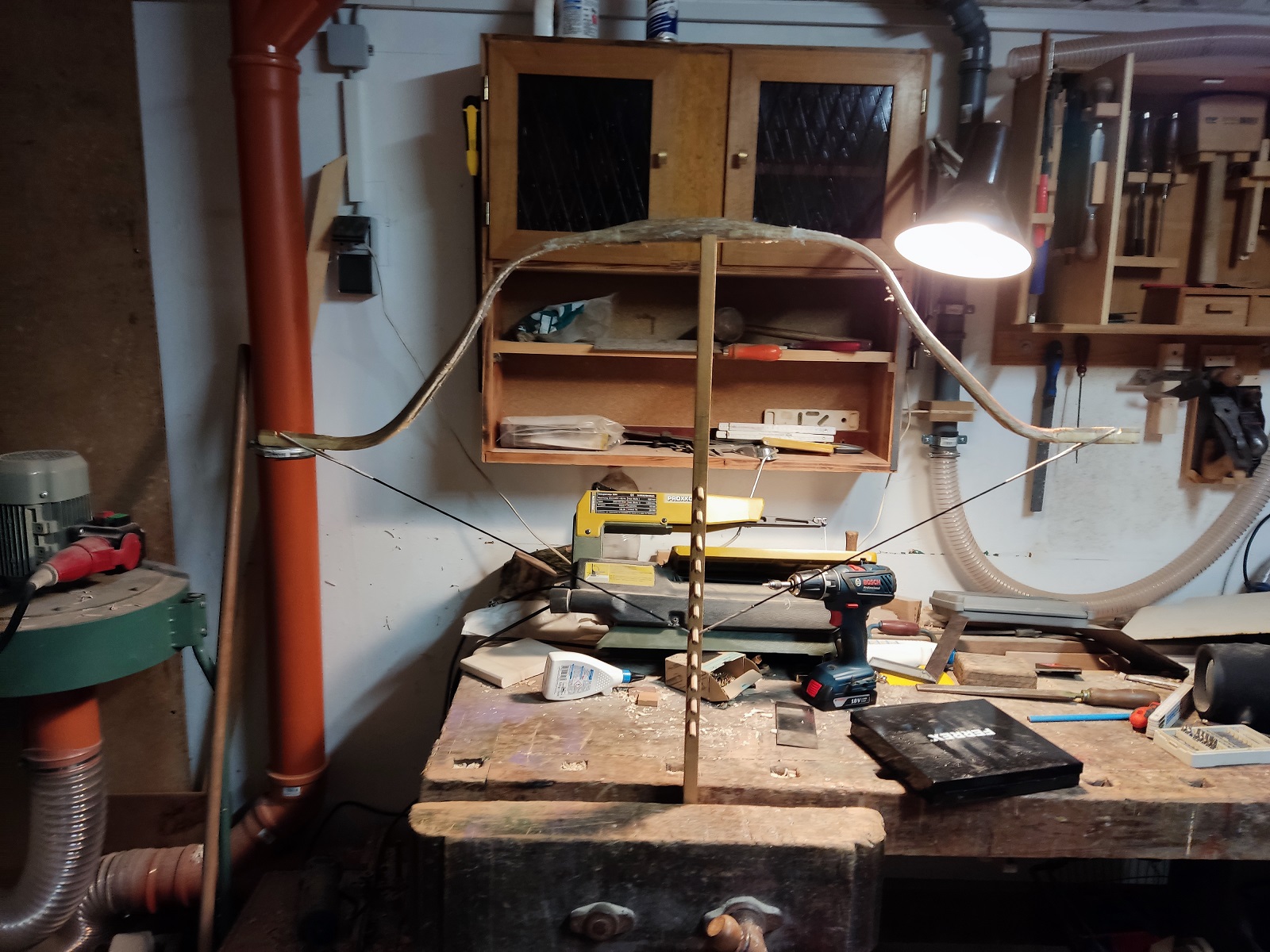 Anfang Februar war ich dann langsam ungeduldig und hab angefangen den Bogen zu biegen... wie gesagt, was soll schon noch kaputt gehen, der Bogen wird ja sowieso nichts.