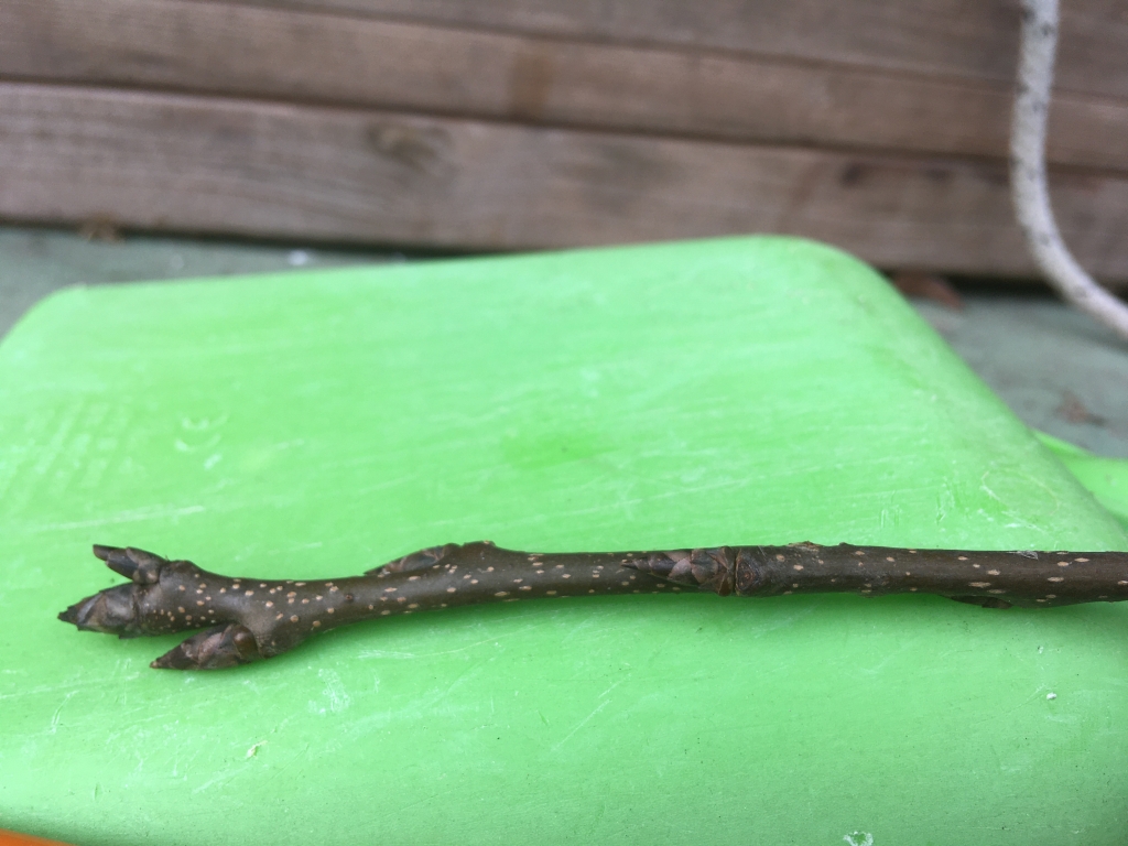 In einem Tannenzaun standen zwei Birken. Nach den Stürmen im Februar hing eine schief in der anderen und musste weg. Die anhängende Maßerknolle hab ich mir gleich mal gesichert