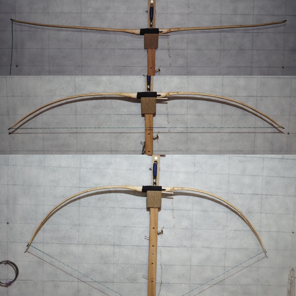 Auch durch den langen Griffbereich verschenkst du Holz dass arbeiten könnte und das ist bei so einem kurzen Bogen nicht gut wegen dem Sehnenwinkel.