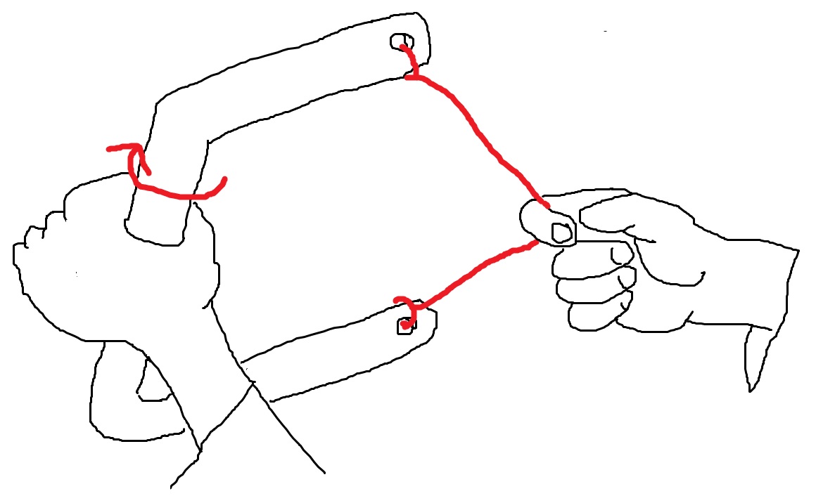 - Betrachtung Bauchseitig, rechts ist oben, Pfeil = Griff