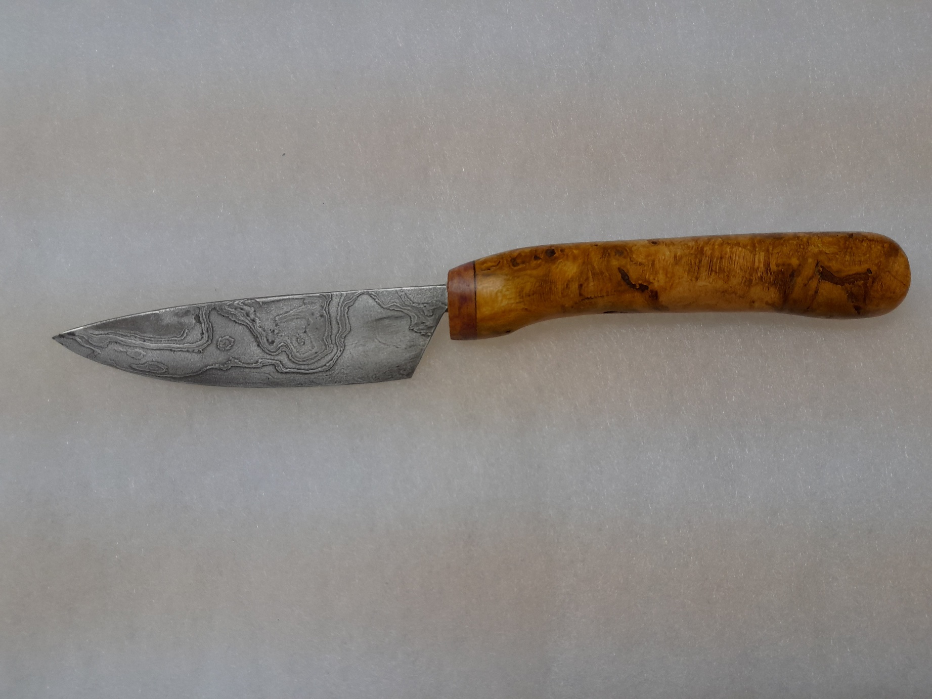 vor zwei Jahren habe ich dieses Messer mit dem etwas ungewöhnlichen Griff gemacht.