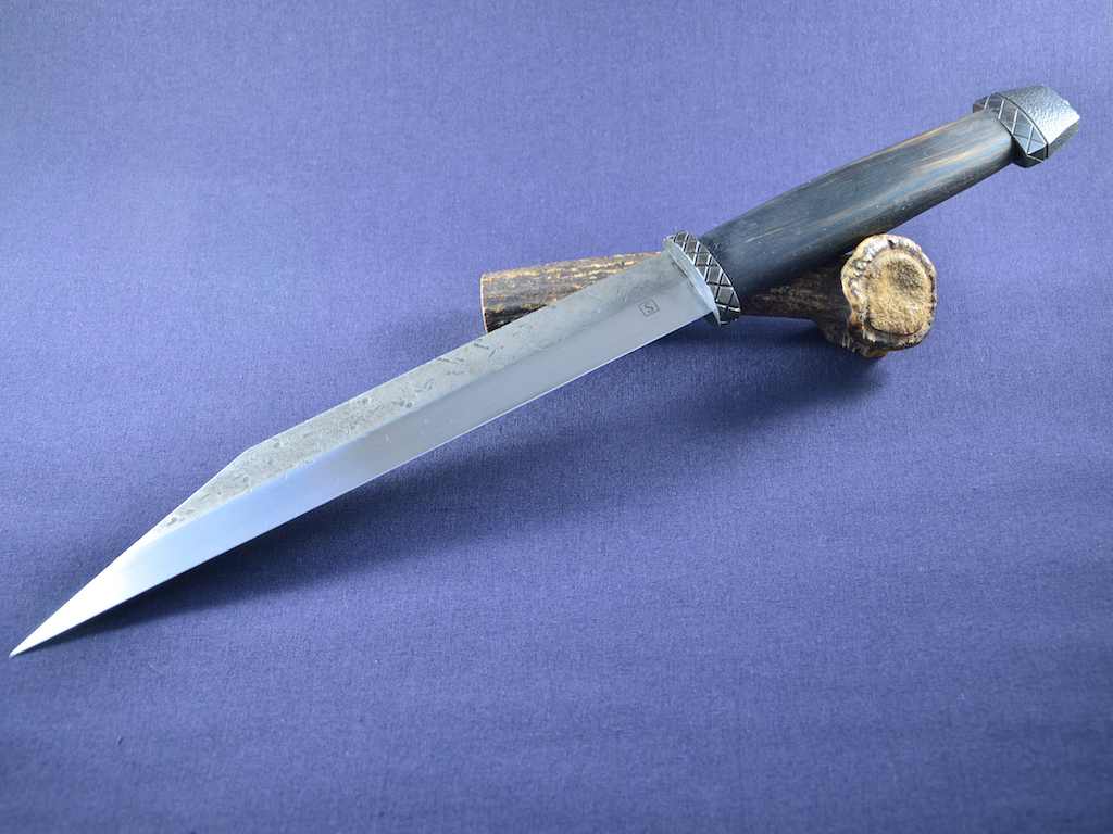 Für die Historiker die Mittelalterwaffen nachbauen, nein dieses Sax hat nicht den Anspruch auch nur annähernd historisch zu sein. Es ist das was Stefan im wesentlichen im Kopf hatte. Die Ausführung und die Details sind allerdings von mir.
