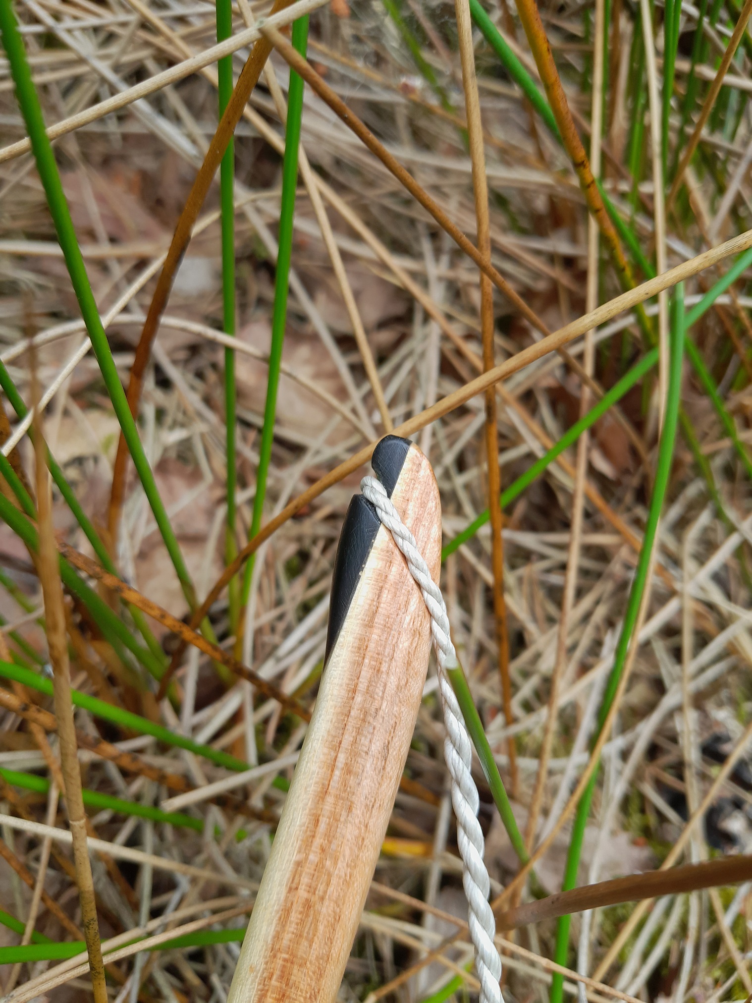 Griff mit grauem Leder gewickelt und Arrowpass aus Bergulmenkernholz.