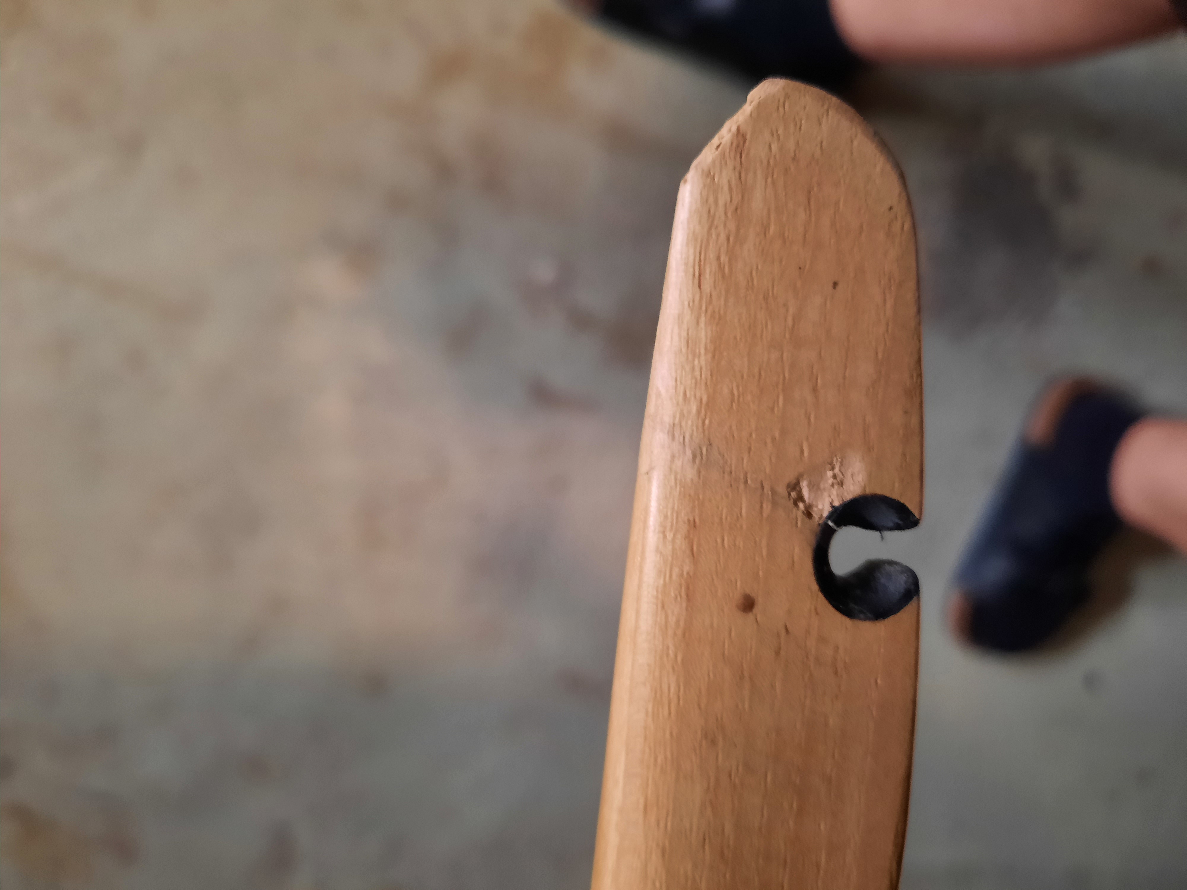 Das am Ende ein Stück fehlt bereitet mir keine Sorge. Aber das direkt an der Sehnenkerbe eine Macke und wohl auch kleine Kerbe ist bereitet mir Sorgen. Die Kerbe ist scheinbar nur einen halben Millimeter, aber lässt sich so nicht genau sagen. Nach 20 Testschuss ist noch nichts passiert, aber mehr habe ich mich jetzt nicht getraut. Wenn die Siyah abbricht ksnn ja sonst was passieren.