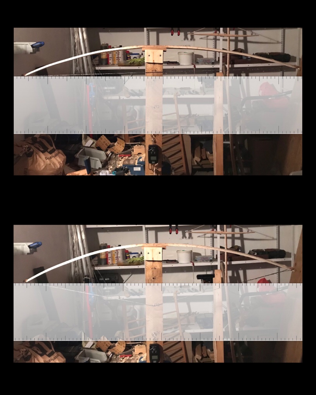 Auf dem Foto mit der Biegung sieht es mir danach aus, als müsstest du beim Ausformen aufpassen, dass dir in diesen Bereichen der Bogen nicht zu schwach wird, je nachdem mit wie viel Kraftaufwand die Biegung erzeugt wurde. Und natürlich abhängig vom späteren Zuggewicht. Also schön vorsichtig an die Fadeouts rantasten und die endgültige Ausformung in den Tillerprozess integrieren. Ein paar Hiebe mit ner Feile können sich am Schluss sehr stark auf den Tiller auswirken.
