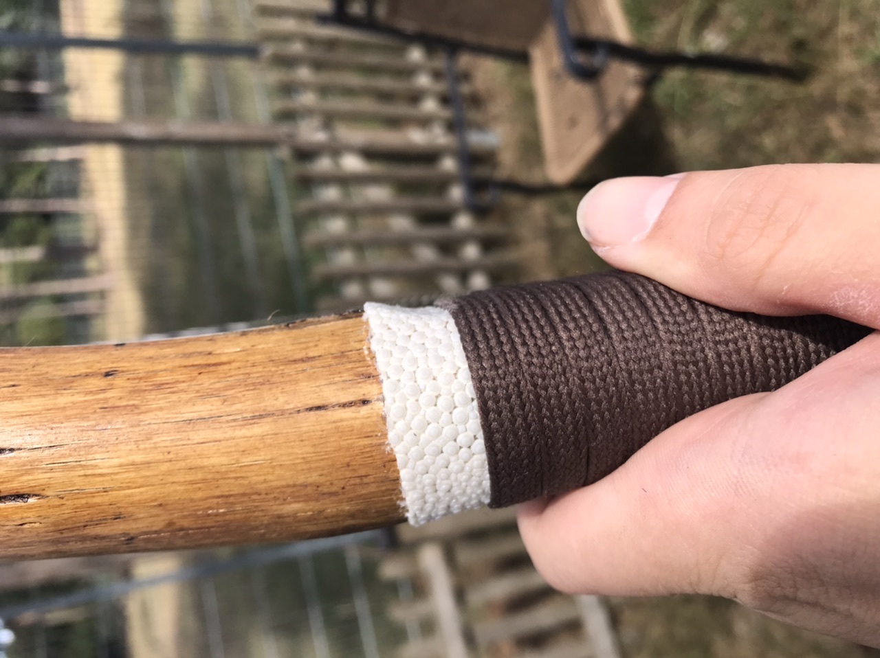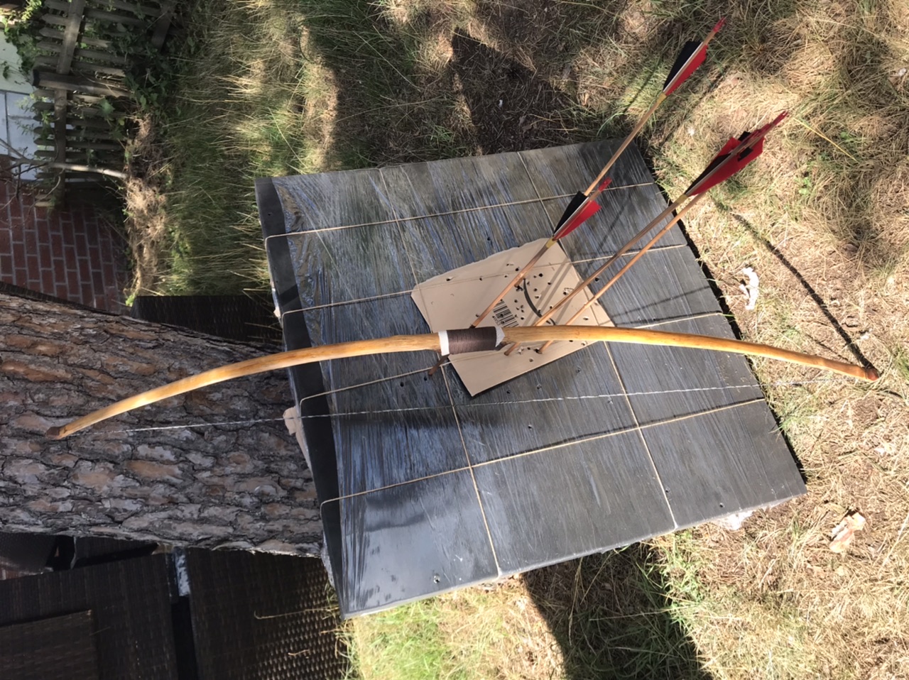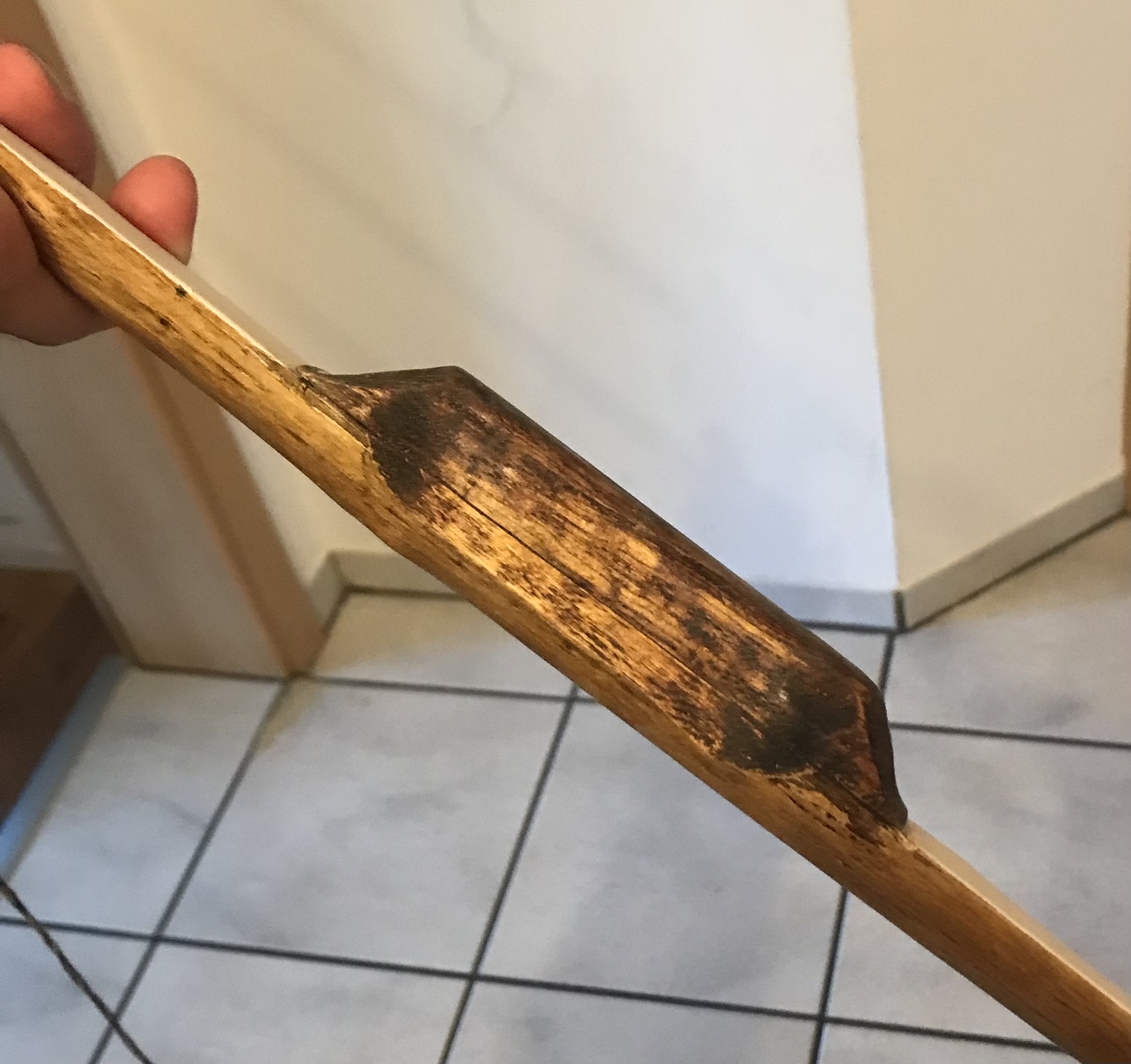 Edit: Dachte ich håtte es irgendwo geschrieben aber falls doch nicht: Das weiße um den Griff ist Rochenhaut, schützt das Holz vor den Pfeilen und hält den Griff zusammen.