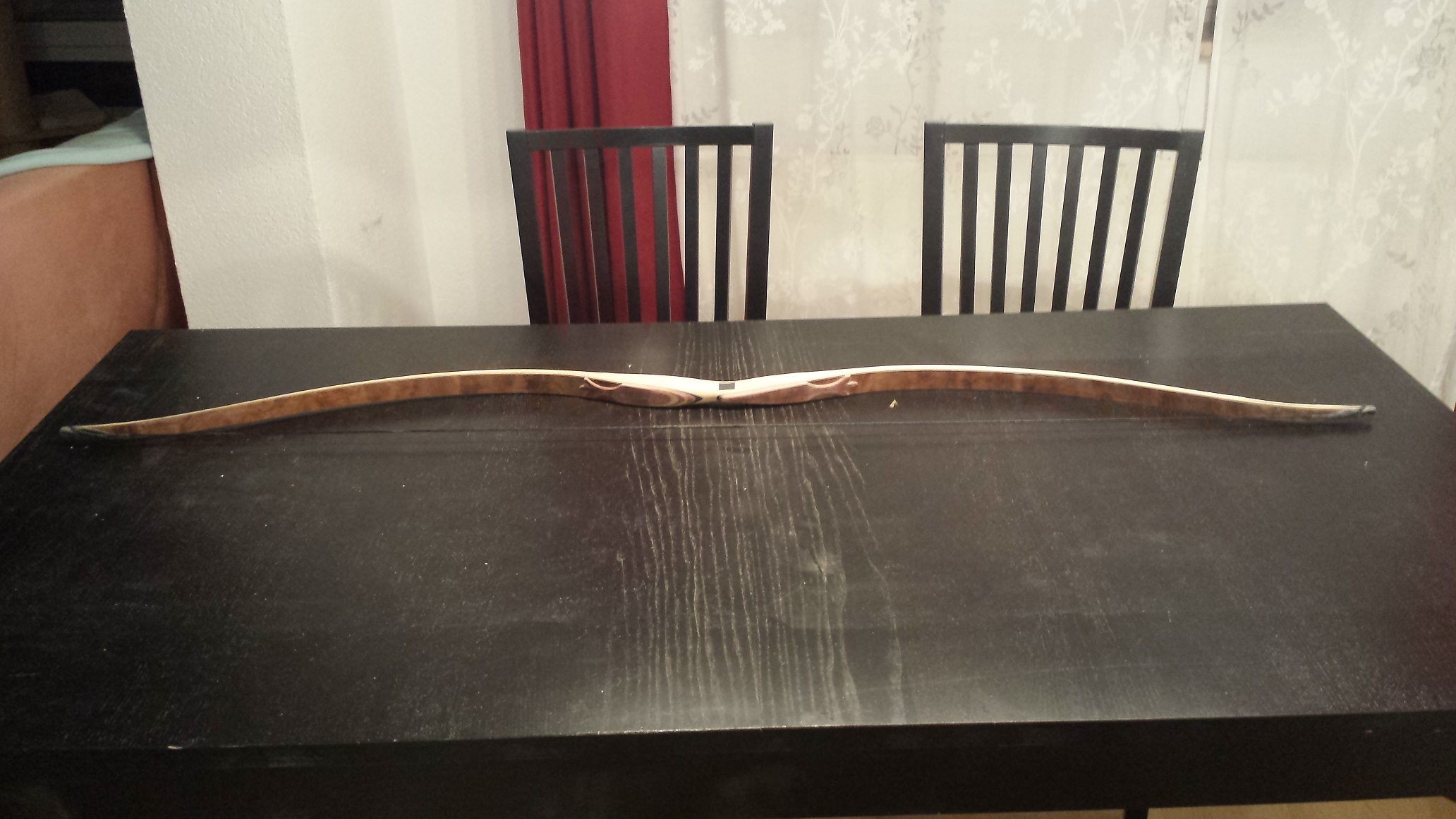 Sehne kommt auf alle Fälle drauf und dann mal schauen, wie dünn ich Mitte bis Ende der Wurfarme machen kann. Von der Steifigkeit her hab ich noch etwas Spielraum. Verträgt mit Sicherheit noch 0,5 cm weniger.